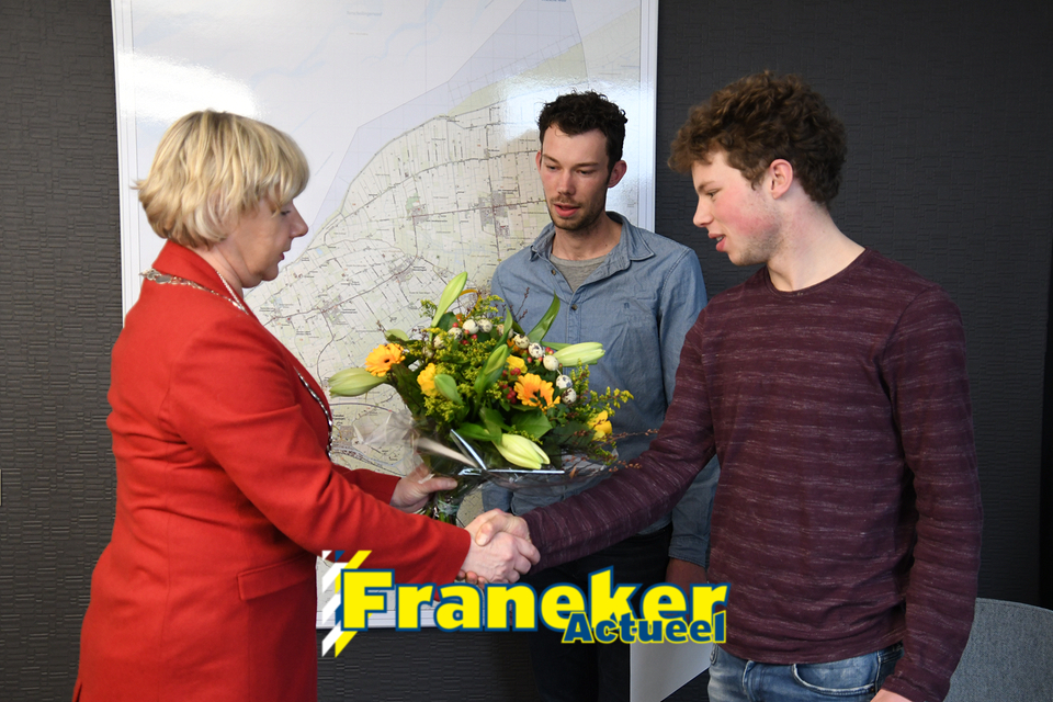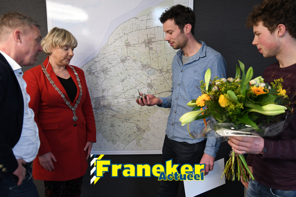 Anne Jansma nam uit handen van Burgemeester Marga Waanders het vindersloon en een oorkonde in ontvangst, het bos bloemen was voor zijn broer. Juwelier Kramer uit Franeker bood een prachtige ‘Sulveren ljip’ aan.