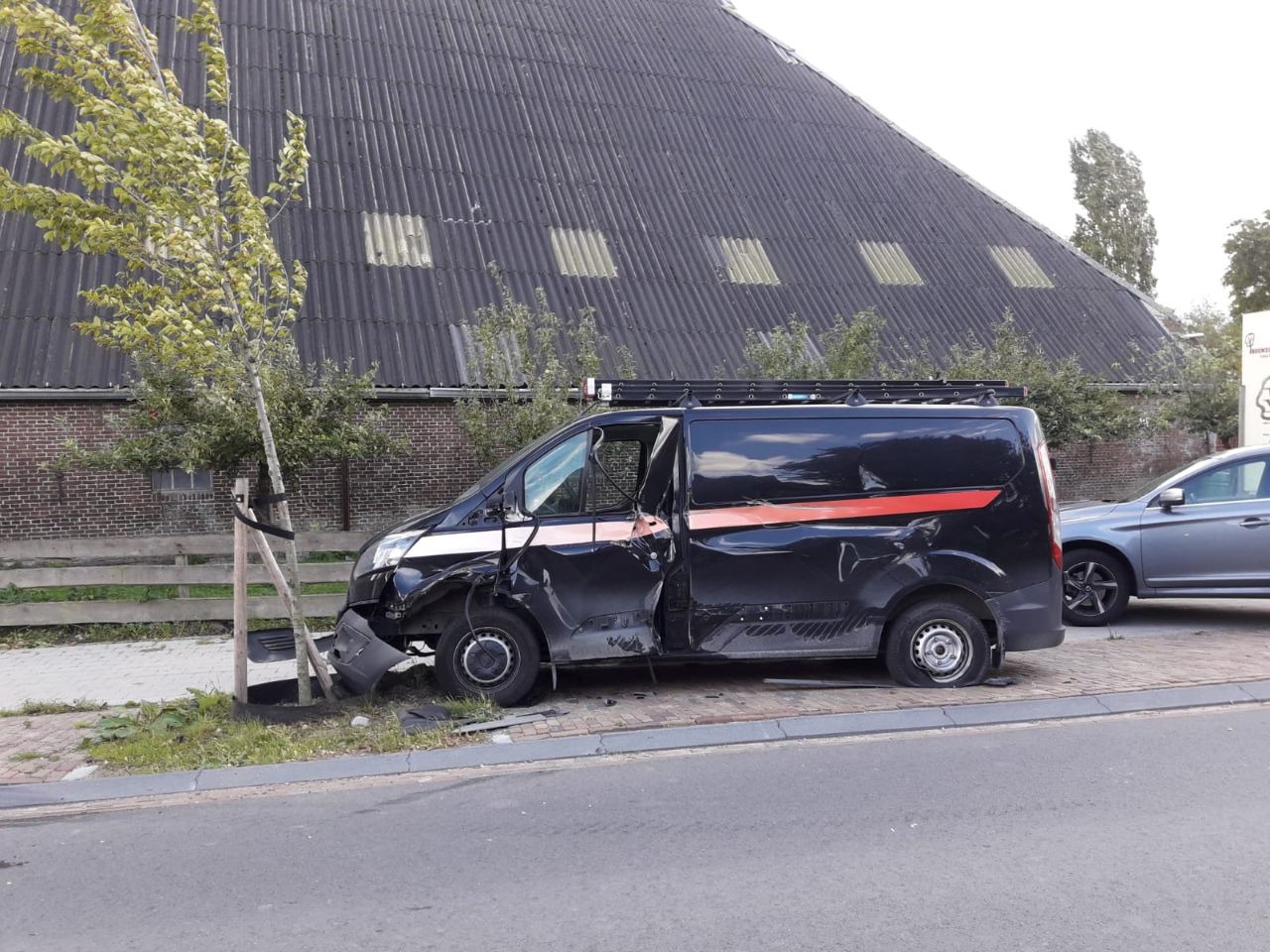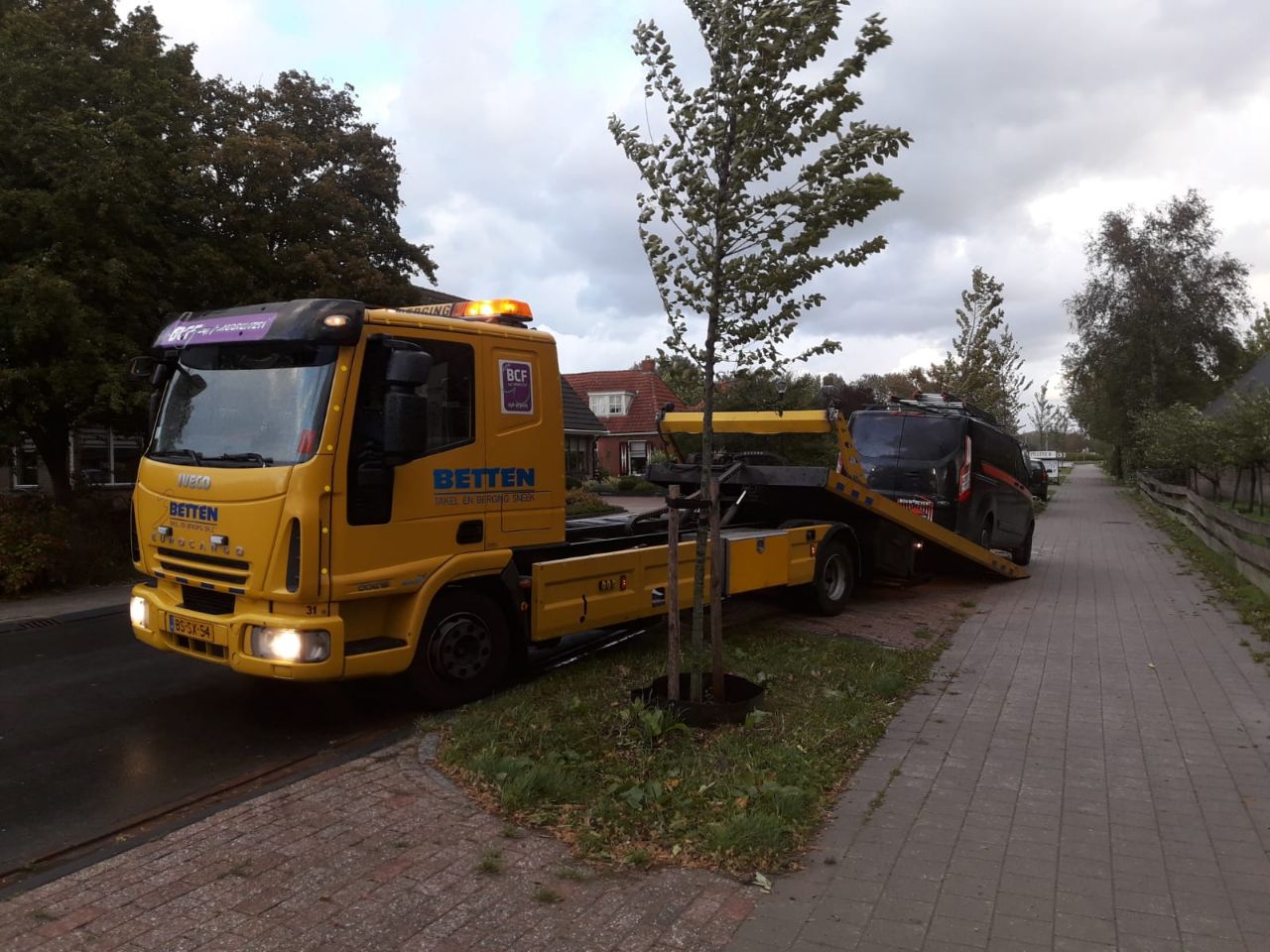 Een berger heeft de beschadigde bestelbus afgevoerd.