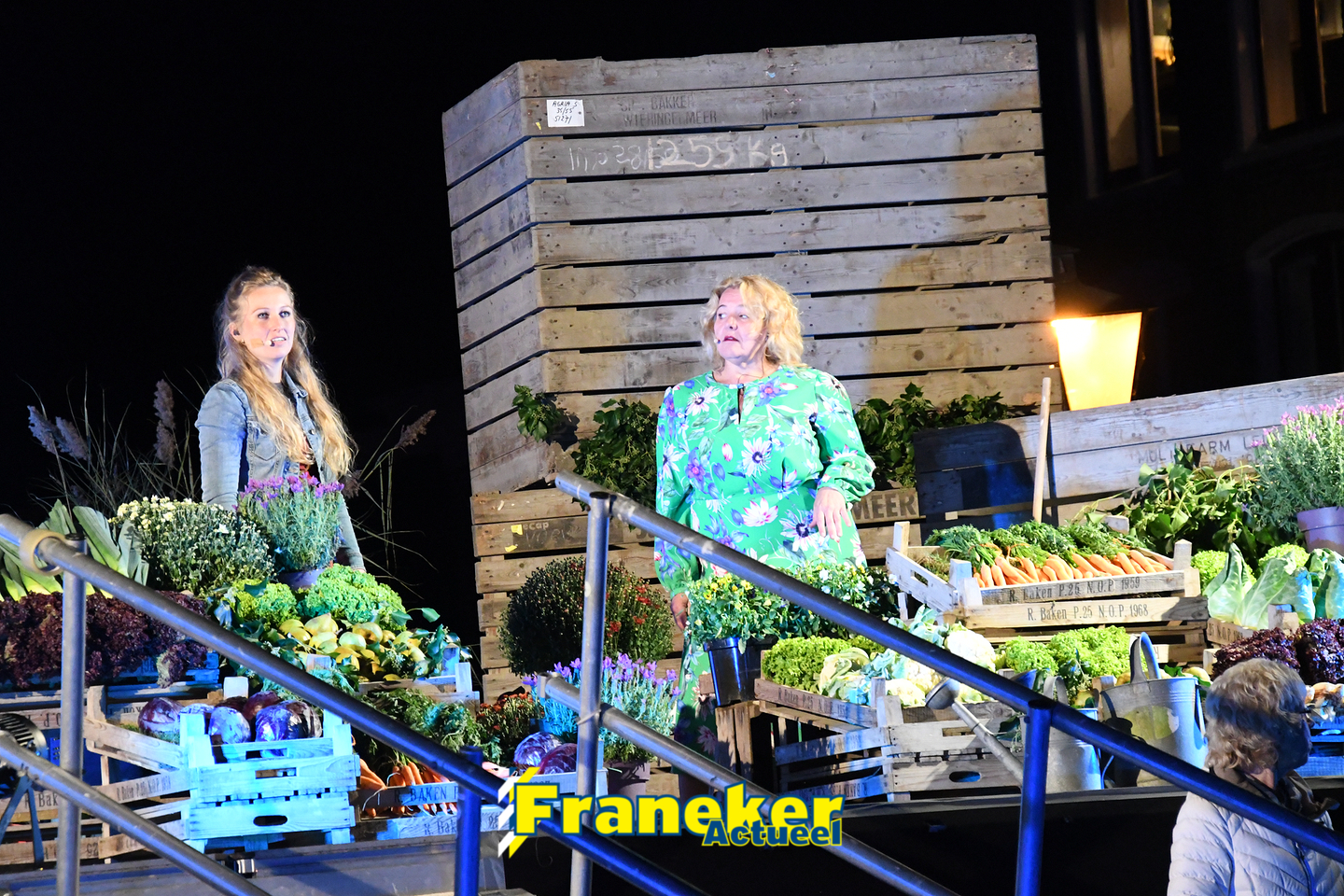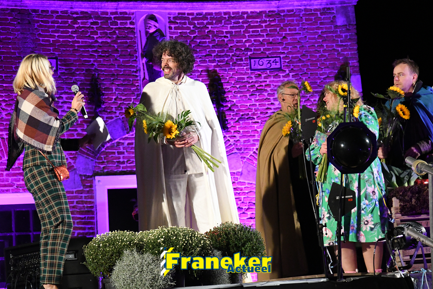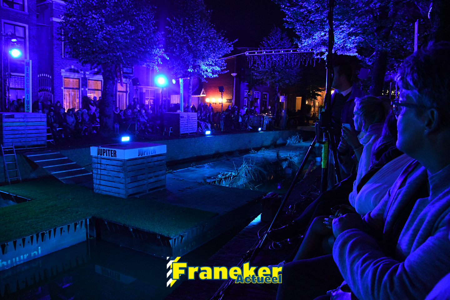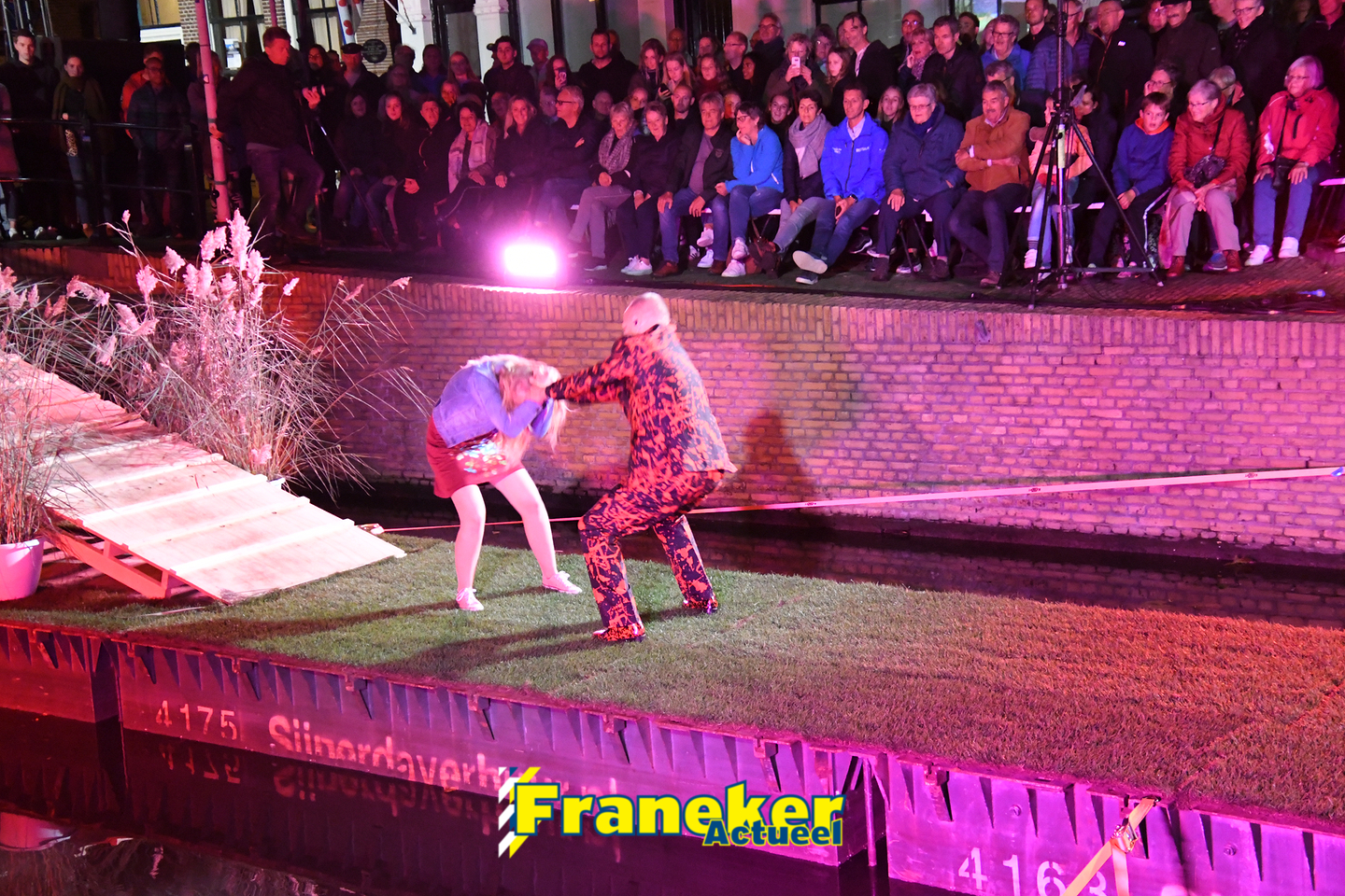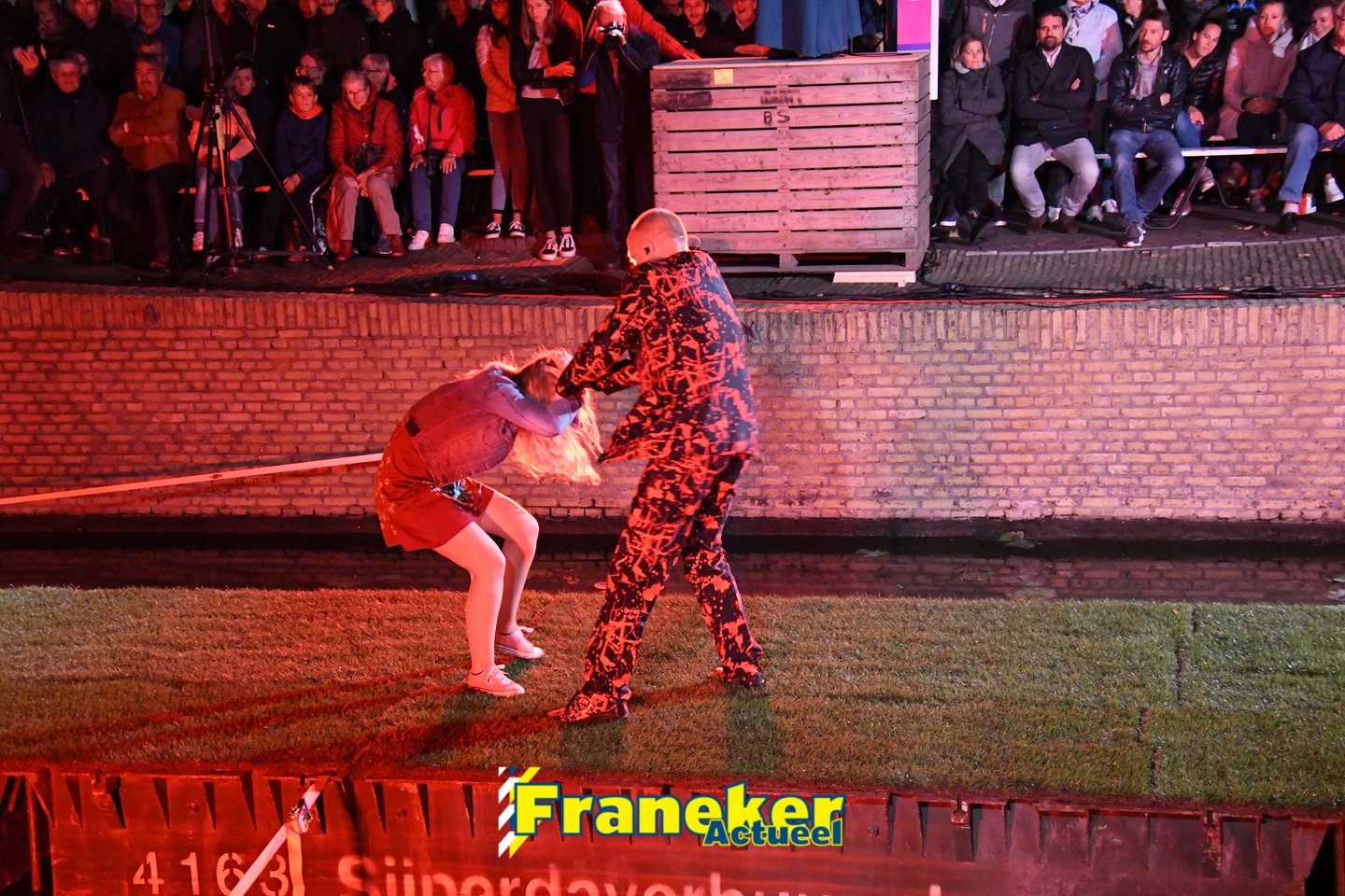 Langs de grachten voor het mooie, monumentale Korendragershuisje was het meeslepend theater- en muziekspektakel. Geschreven door regisseur Bart Kingma (Ried) en de band was samengesteld door Thomas Schiphof (Franeker).