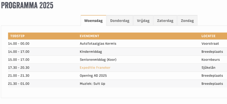 U bent vandaag hartelijk welkom bij dag 1 van de Agrarische Dagen, hét vijfdaagse stadsfeest dat de stad van 17 t/m 21 september kleurt met muziek, cultuur, sport en vele ontmoetingen. Hieronder het programma voor vandaag: