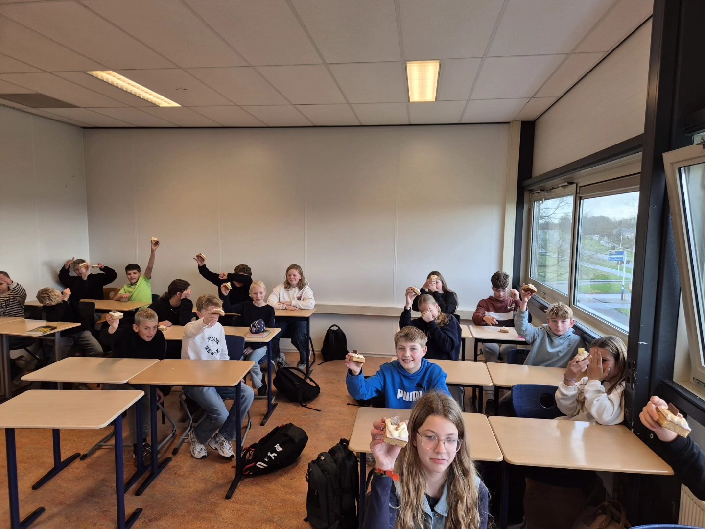 Ise uit klas 1A is de winnaar van de Techwijzer-prijsvraag. Als feestelijke beloning kreeg haar hele klas een heerlijke taart, waar iedereen van heeft gesmuld.