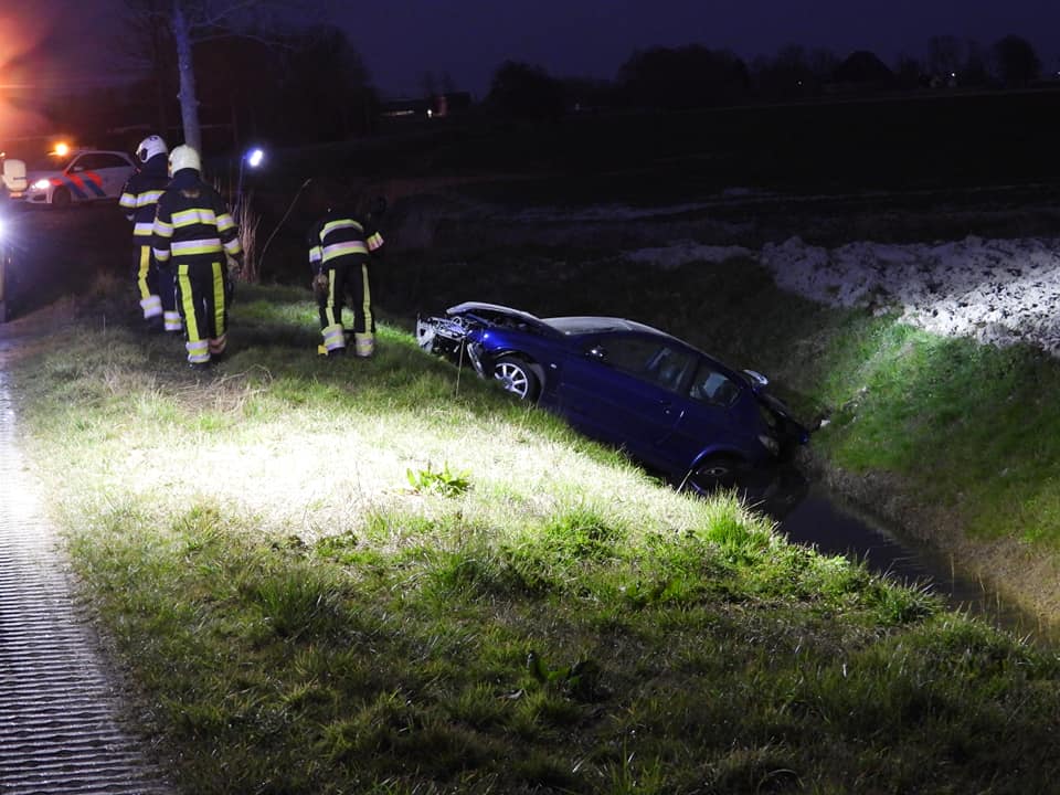 Door nog onbekende oorzaak raakte maandagmorgen rond de klok van 6:00 uur een auto van de Dongjumerweg bij Ried af en belande daarbij in de sloot.