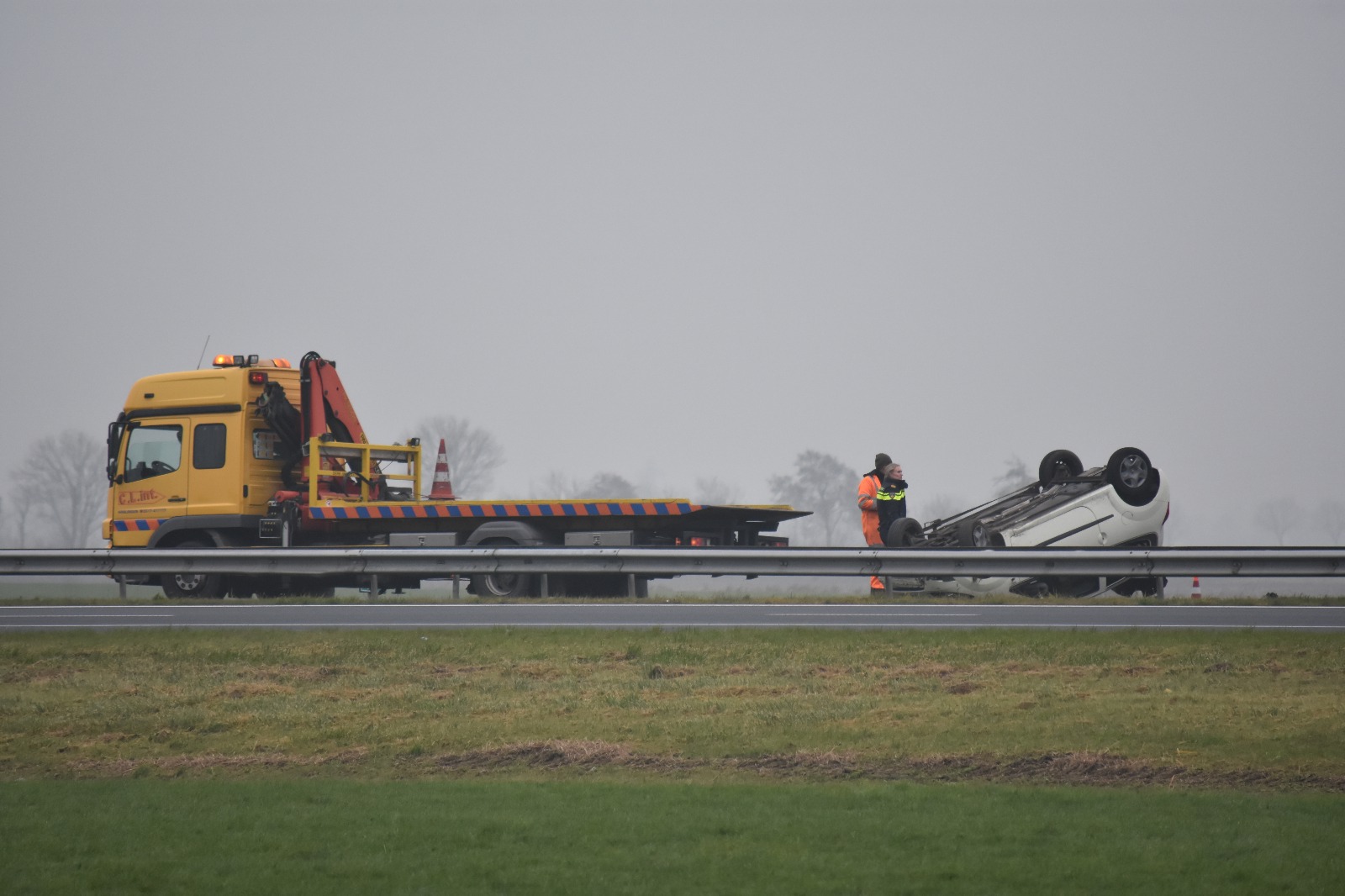 Door nog onbekende oorzaak vloog er zondagmorgen op de A31 een auto over de kop, dit alles ter hoogte van Schalsum in de rijrichting van Dronryp.