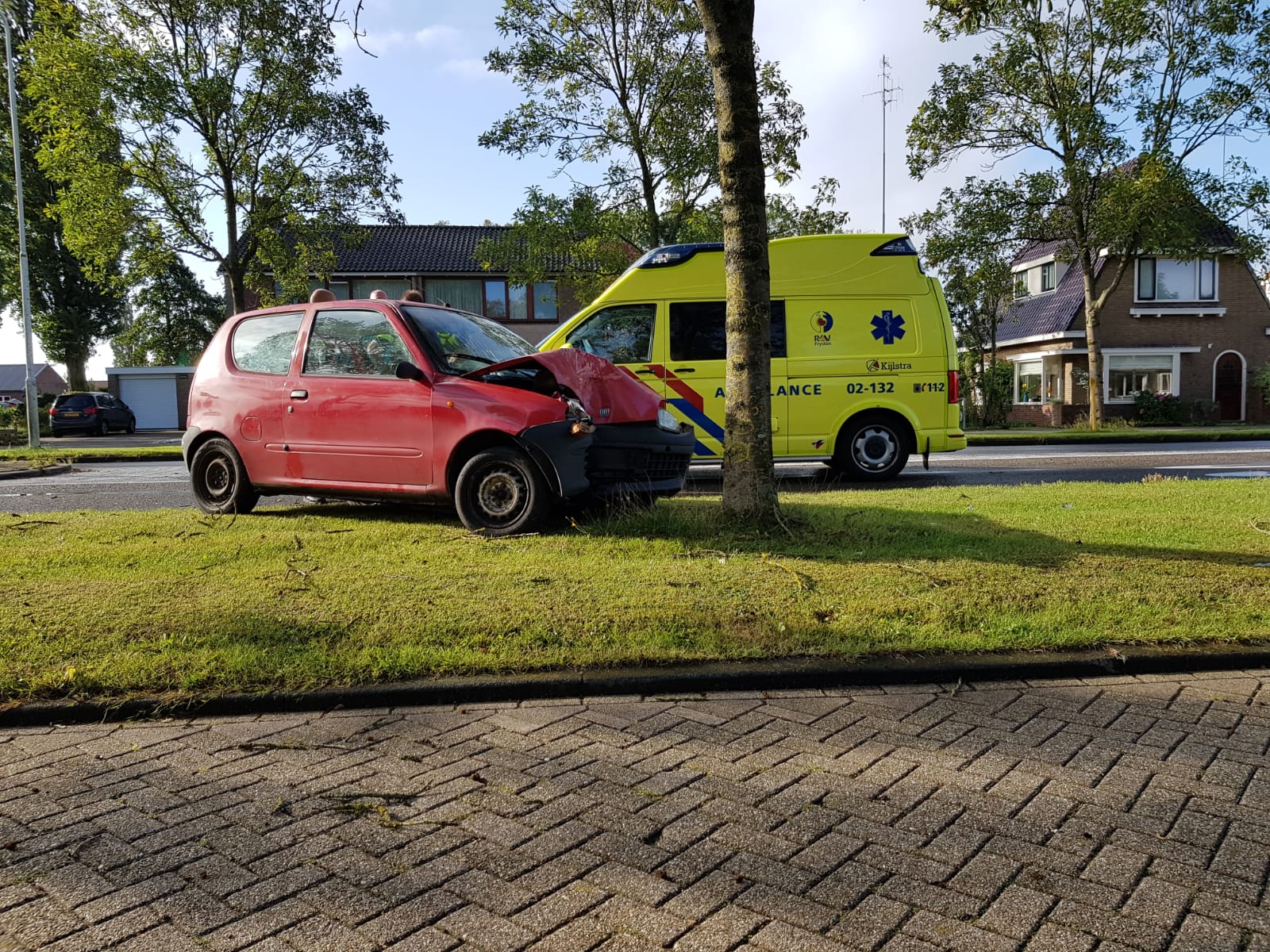 Donderdagmorgen werd de politie en de ambulance gealarmeerd voor een eenzijdig ongeval, door onbekende oorzaak was een auto op de Harlingerweg van de weg geraakt en tot stilstand gekomen tegen een boom.