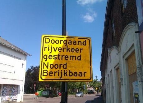 Franeker – Van maandag 20 juni t/m vrijdag 24 juni 2011, of zoveel langer of korter als noodzakelijk zal zijn, is de brug in Hocquart/Sjaardemastraat in Franeker afgesloten voor alle verkeer. Dit in verband met uit te voeren betonreparatiewerkzaamheden. De omleidingsroute zal met borden worden aangegeven. Alleen is de spellingscontrole niet gebruikt, zoals op de foto duidelijk te zien is.