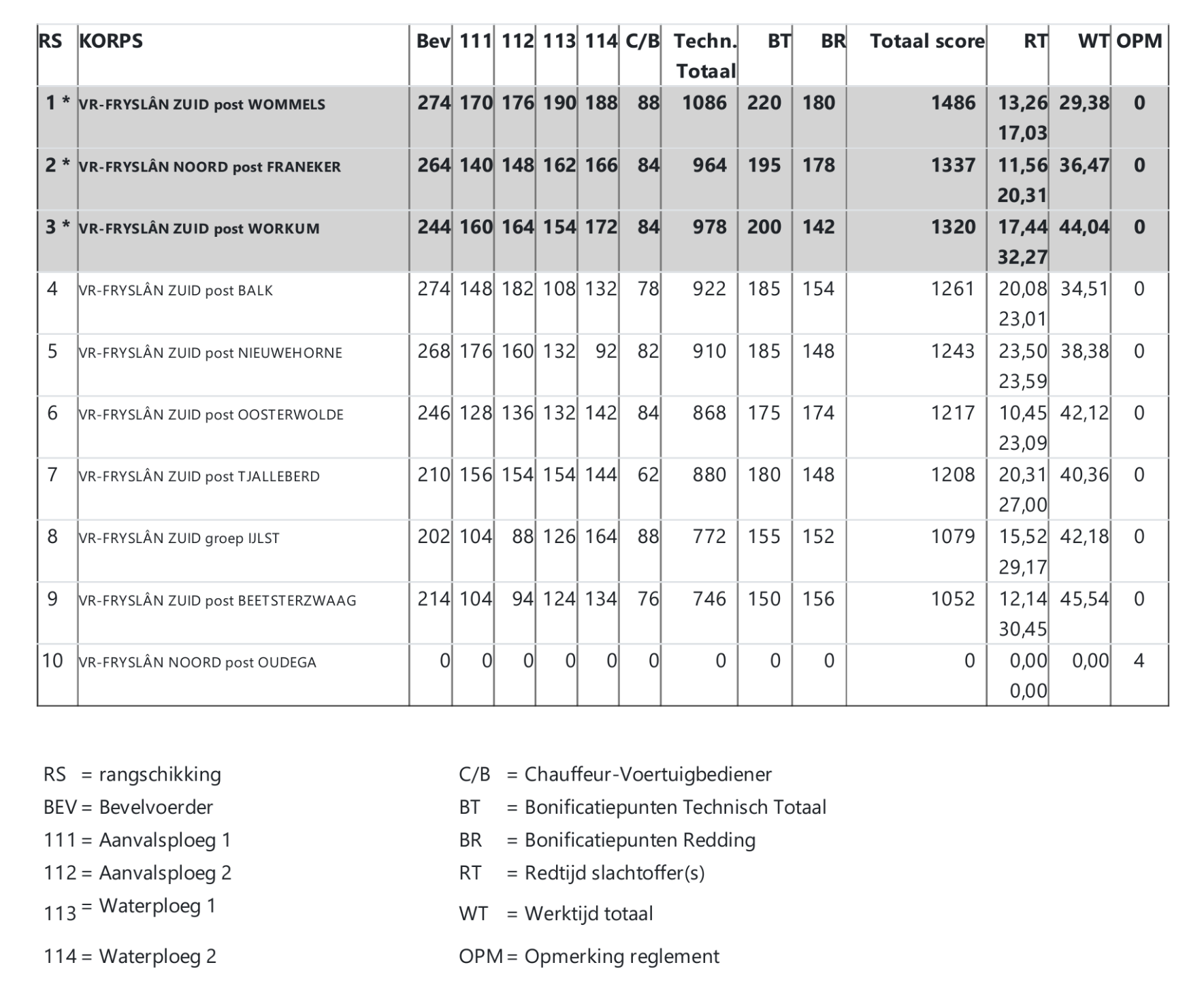 Brandweer Franeker eindigt als tweede bij de provinciaal klasse 112 wedstrijd in Wolvega, in een deelnemersveld van tien Friese ploegen een prima score. Doordat Franeker tweede werd mogen ze later dit jaar mee doen met de gewestelijke wedstrijden. De individuele scores staan hieronder bij de uitslag. Franeker deed mee in de Klasse 112 welke staat voor: