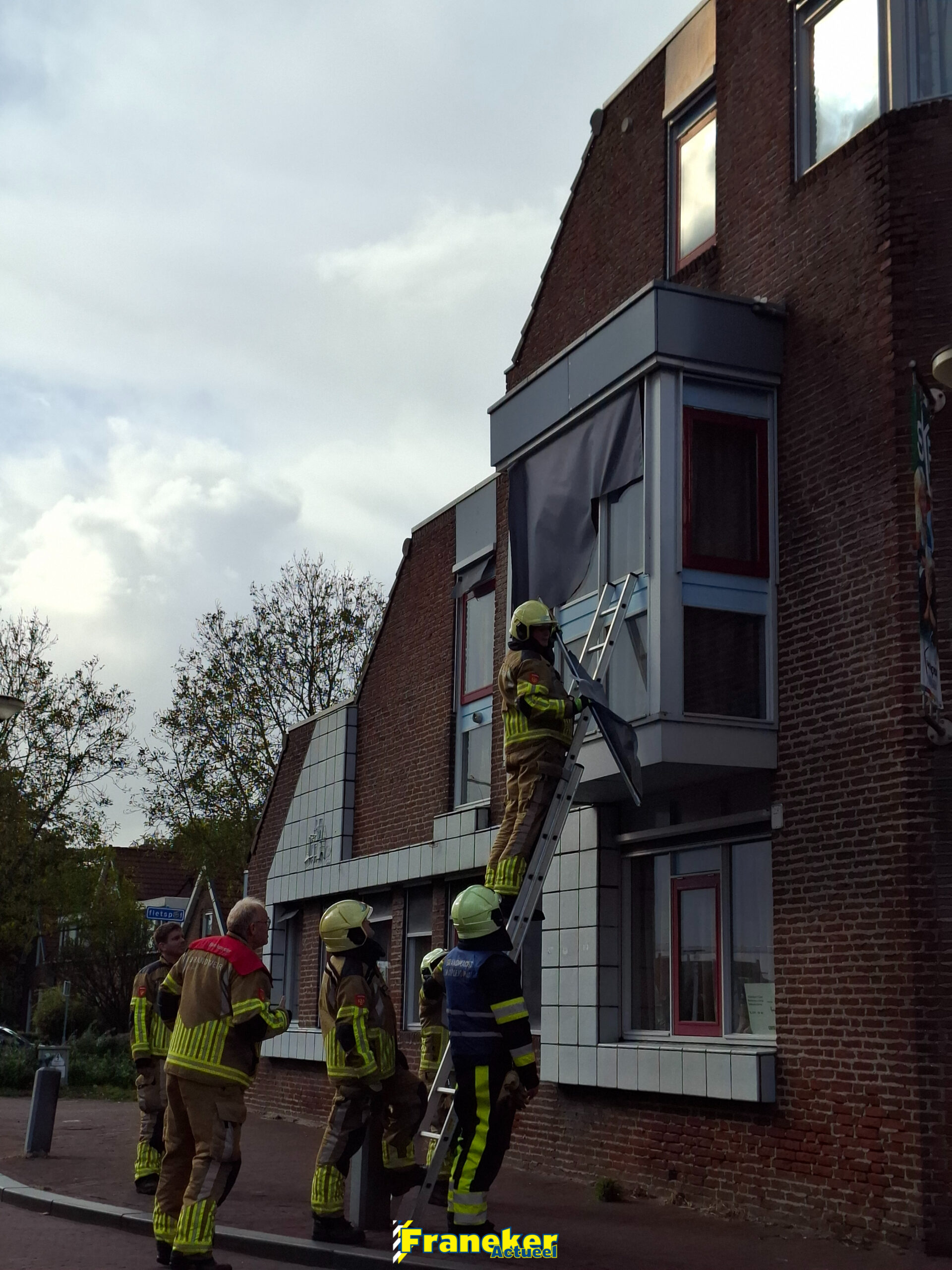 Zaterdagmiddag omstreeks 15.00 uur kreeg de brandweer een melding van stormschade aan de Vijverstraat in Franeker. Ter plaatse bleek een screen op de eerste etage van een gebouw los te zijn geraakt.