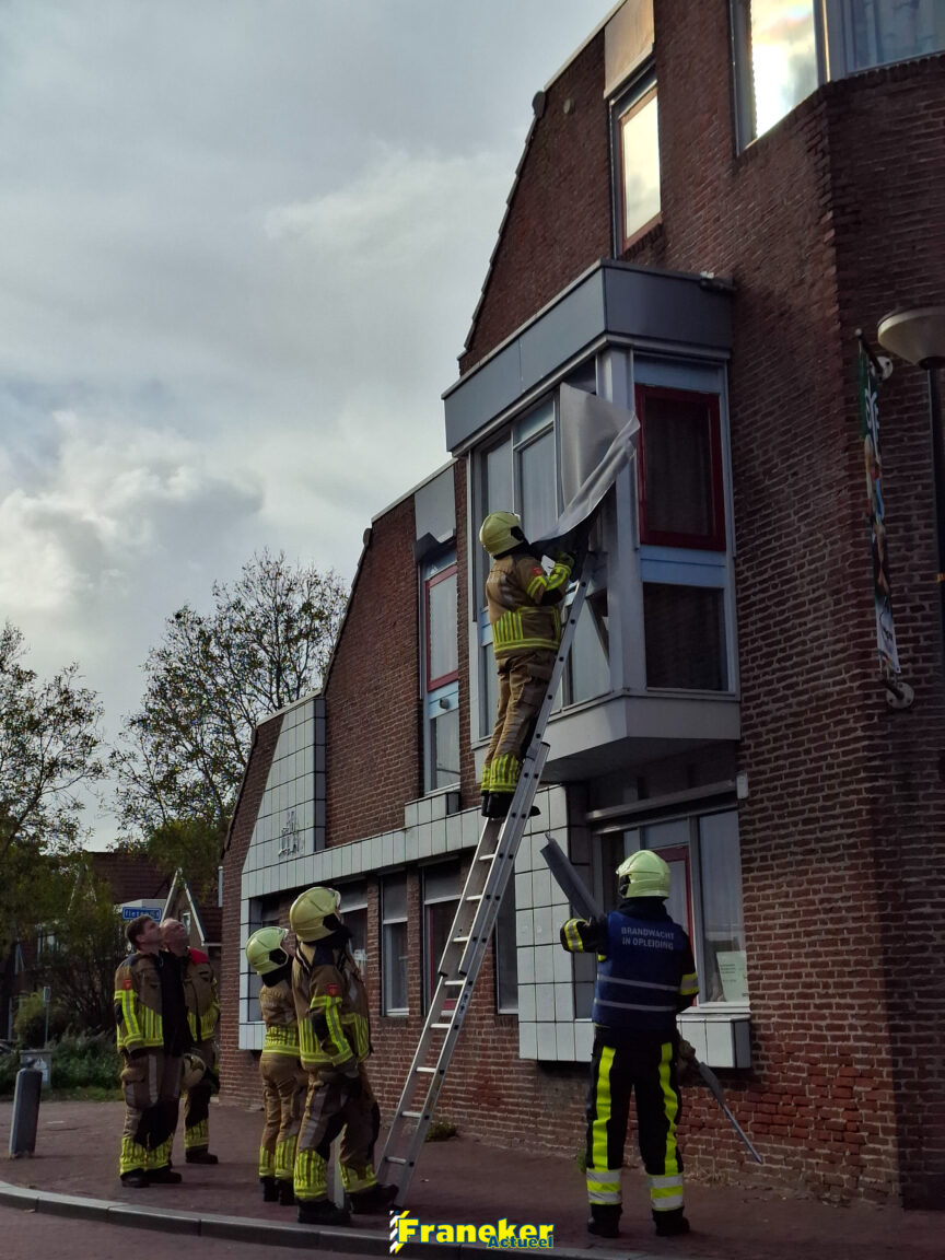 Brandweer verwijdert loshangend zonnescherm in Franeker