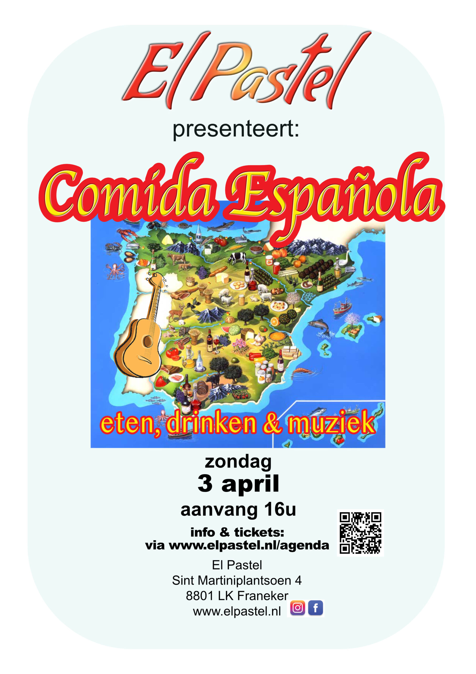 Zondag 3 april, vanaf 16 uur: Comida Españhola in El Pastel.