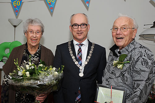 Burgemeester Veenstra kwam het diamanten paar feliciteren met het heugelijke feit.