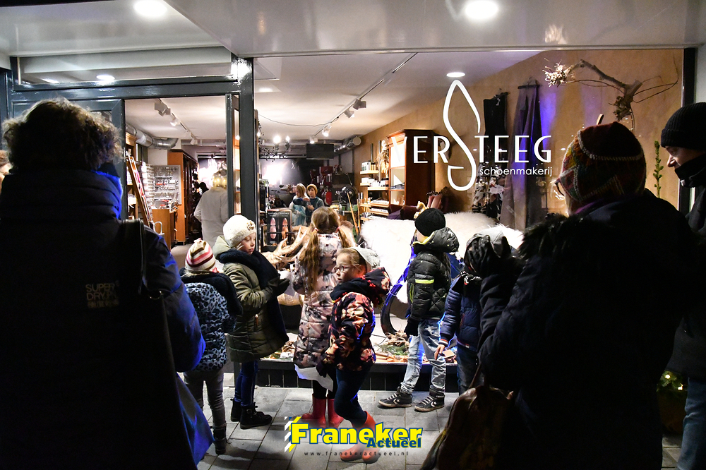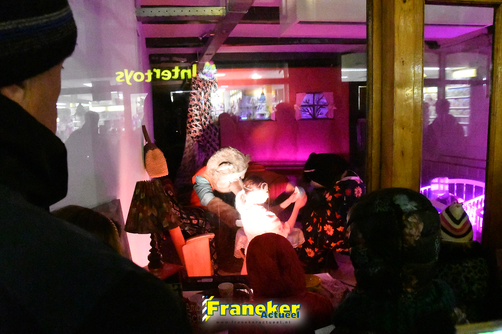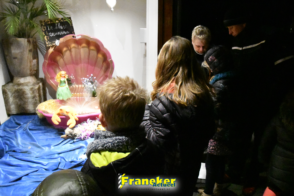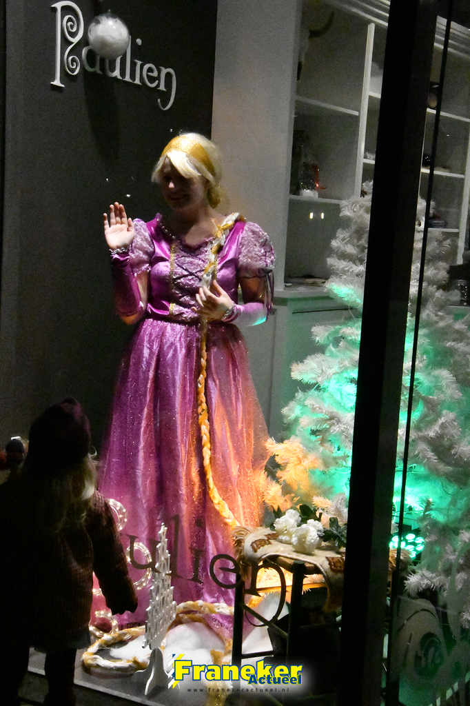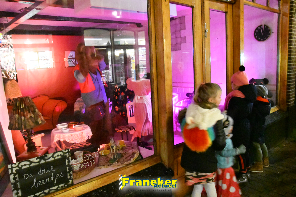 Op diverse plekken in de stad werden de sprookjes afgebeeld in de etalages van de deelnemende winkels en daar was het soms dringen voor de ramen.