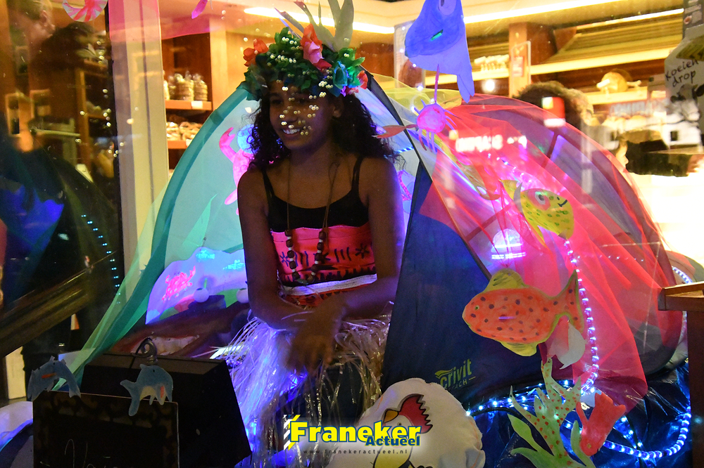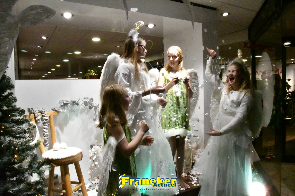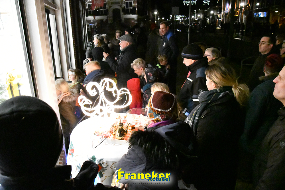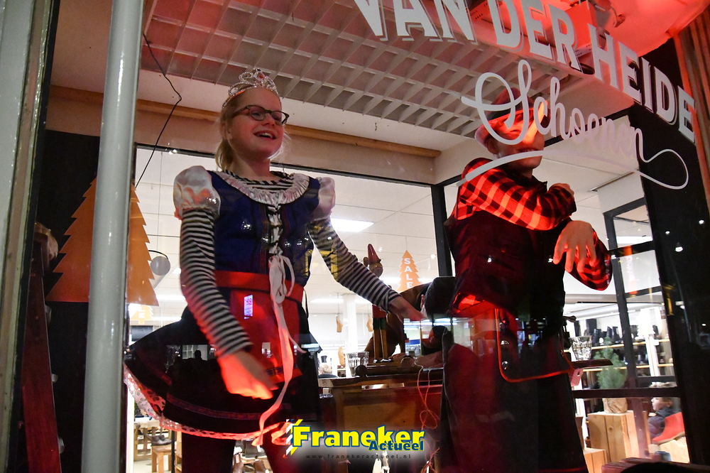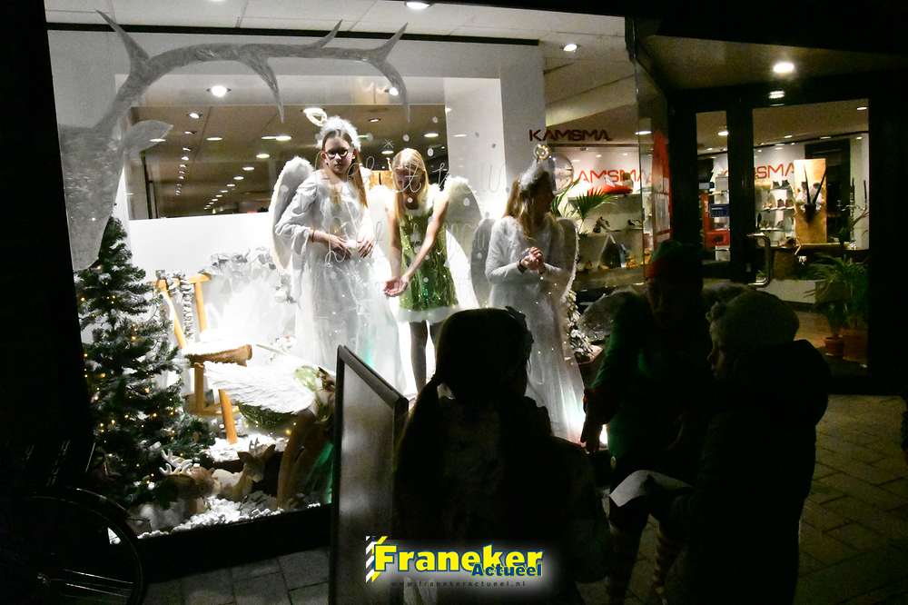 Op diverse plekken in de stad werden de sprookjes afgebeeld in de etalages van de deelnemende winkels en daar was het soms dringen voor de ramen.