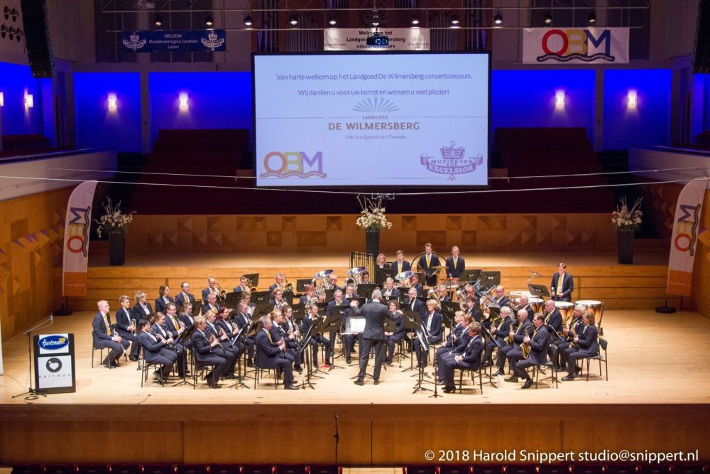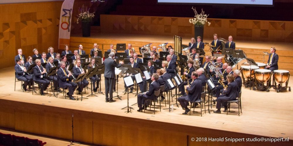 Enschede. Het harmonieorkest onder leiding van dirigent Siemen Hoekstra