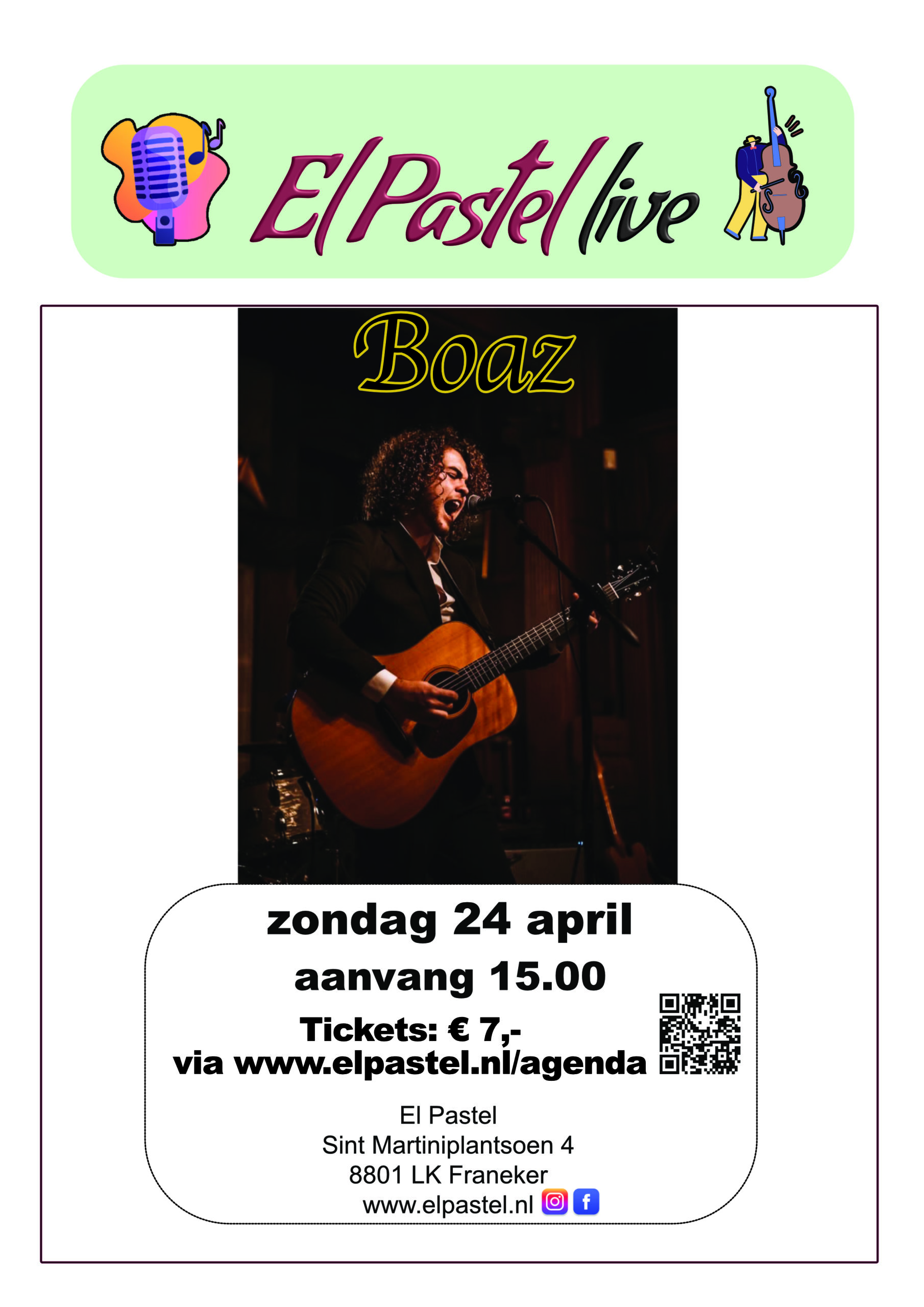 We gaan deze zondag genieten van Boaz! Boaz draait al weer wat jaartjes mee, terwijl hij pas 20 jaar is. Opgroeiend in Zuid-Afrika kwam hij al snel in aanraking met muziek, met name met country, blues en soulmuziek. Hij leerde gitaar spelen, en ontdekte dat hij een uniek stemgeluid heeft. Eenmaal gesettled in Friesland timmerde hij flink aan de weg (o.a. bij het SBS6 programma We Want More). En begon hij met het schrijven van eigen werk. Dat resulteerde in zijn eerste album: Keep It Simple. Vanmiddag zal hij ons verwarmen met zijn eigen geluid!