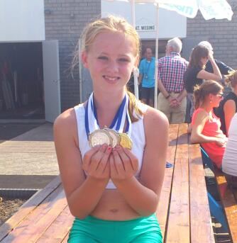 Op de foto Elyne Kingma met de door haar gewonnen medailles.