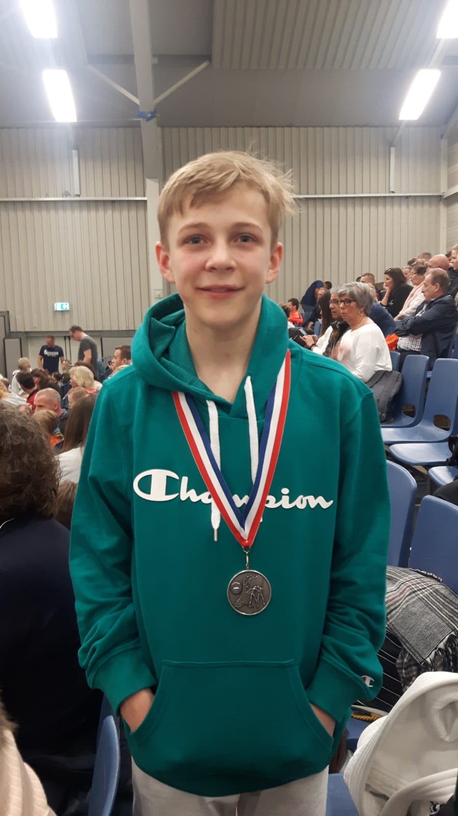 Ook de kwartfinale tegen Markus Feddema werd met ippon gewonnen door verwurging. In de halve finale versloeg Esben Quinn Hulshof met waza-ari. De finale tegen Quinten vd Veen ging verloren. Maar zilver is een geweldige prestatie