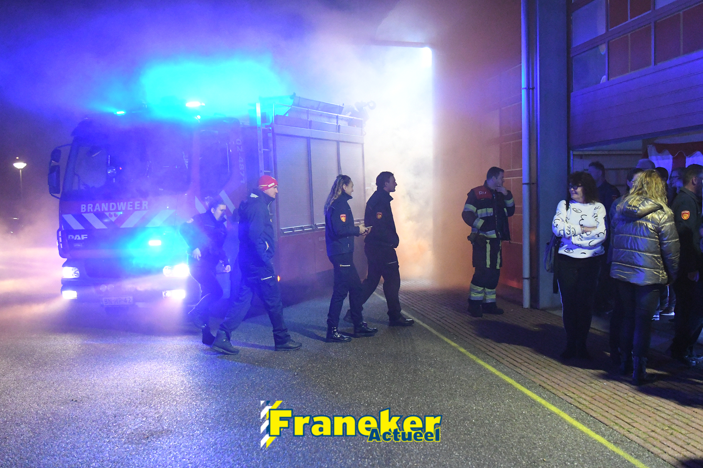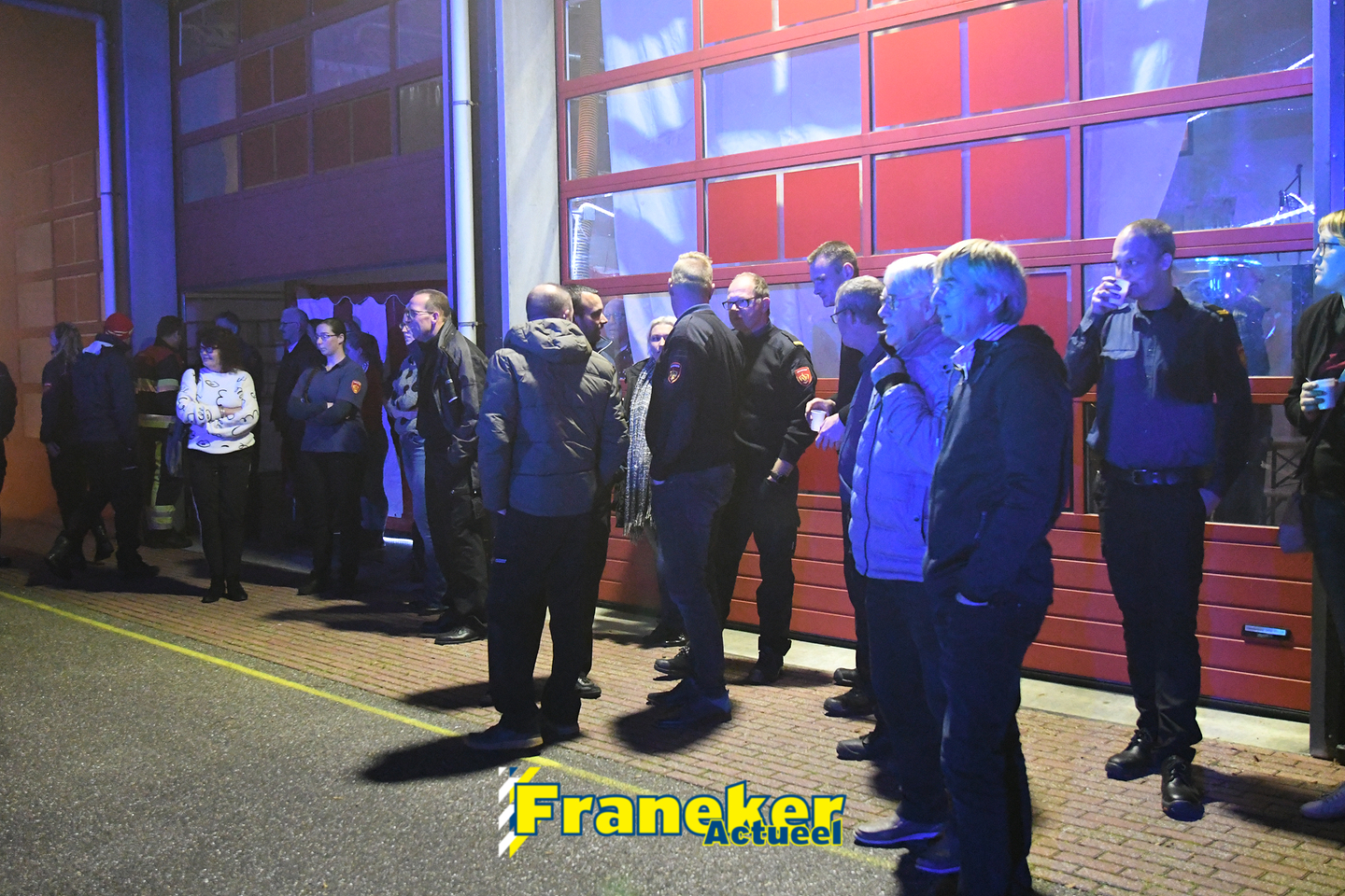 Ido Grovenstein en Rudy Hoekstra namen na respectievelijk 30 en 10 jaar afscheid van het korps Franeker. Ido, begonnen als manschap, was de laatste 20 jaar bevelvoerder. Daarnaast heeft hij deel uitgemaakt van de wedstrijdploeg en sollicitatiecommissie. Rudy was naast manschap ook opstapper/chef HV op het hulpverleningsvoertuig. Buiten de inzetten om maakte hij deel uit van de technische dienst en was hij betrokken bij de jeugdbrandweer. Beide heren zijn door collega`s van huis gehaald, dit werd gedaan met een crashtender van de vliegbasis Leeuwarden. Na een korte tocht door Franeker werden beide afgeleverd op de kazerne.