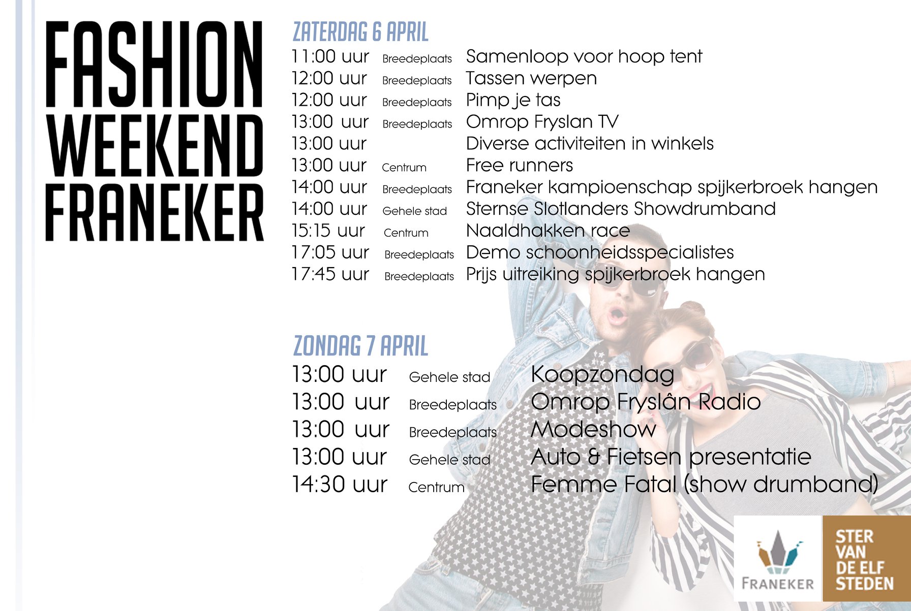 Het Franeker Fashion Weekend (zaterdag 6 en zondag 7 april 2019) is inmiddels een traditie en de organisatie is erin geslaagd ook dit jaar een heel speciaal programma neer te zetten. Een verrassend winkelaanbod met prachtige modezaken en gezellige horeca, veel activiteiten en dat alles in een gemoedelijke sfeer.