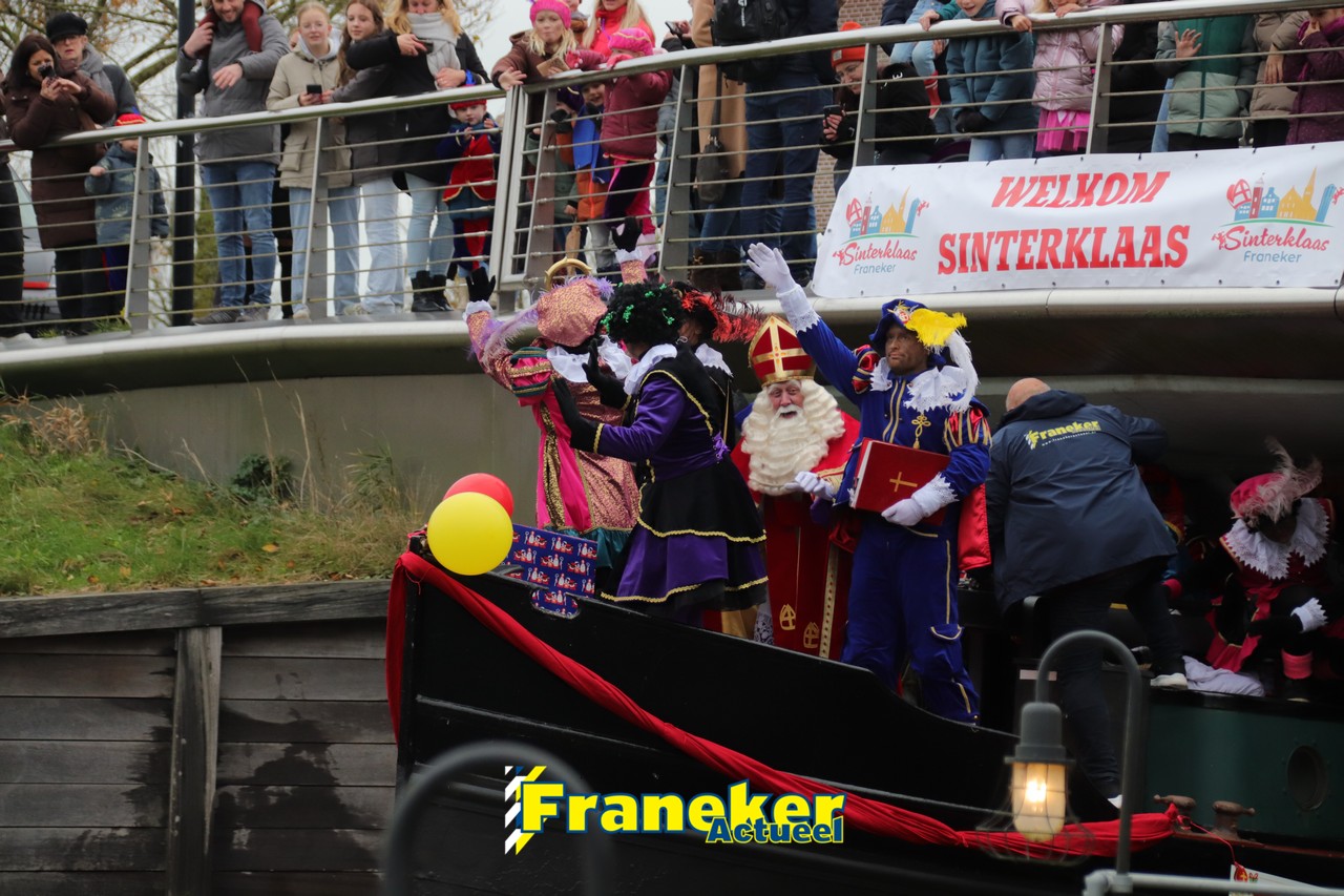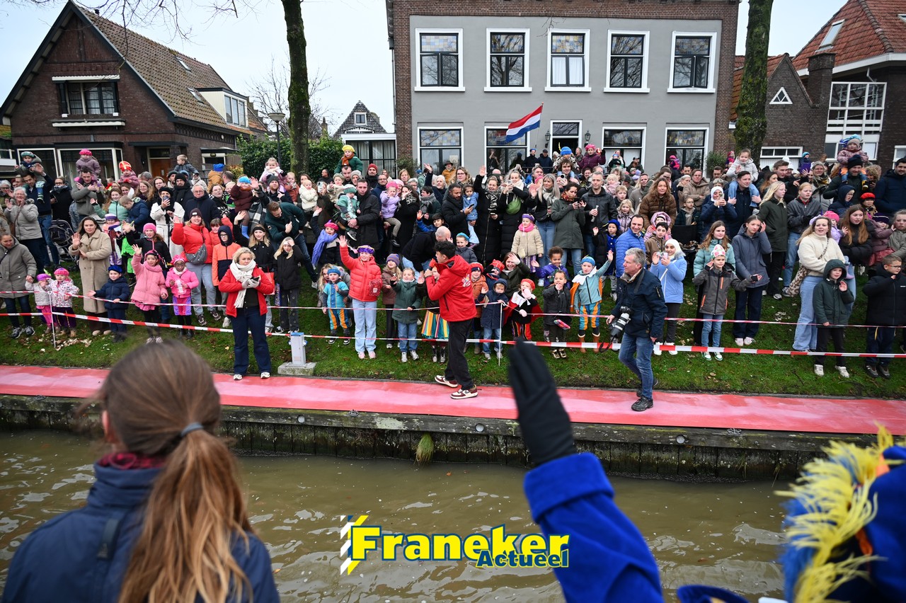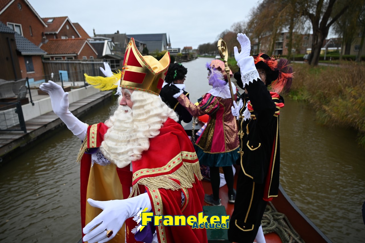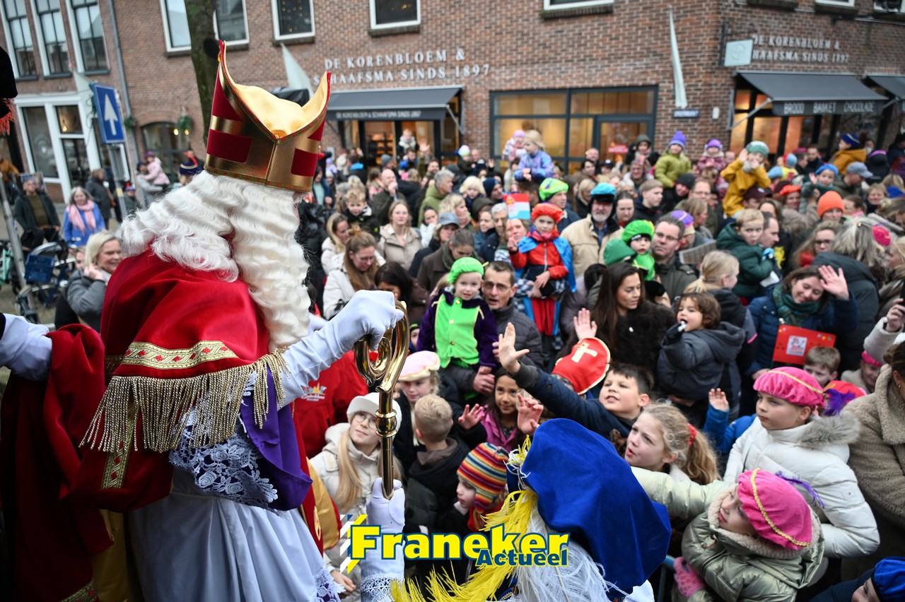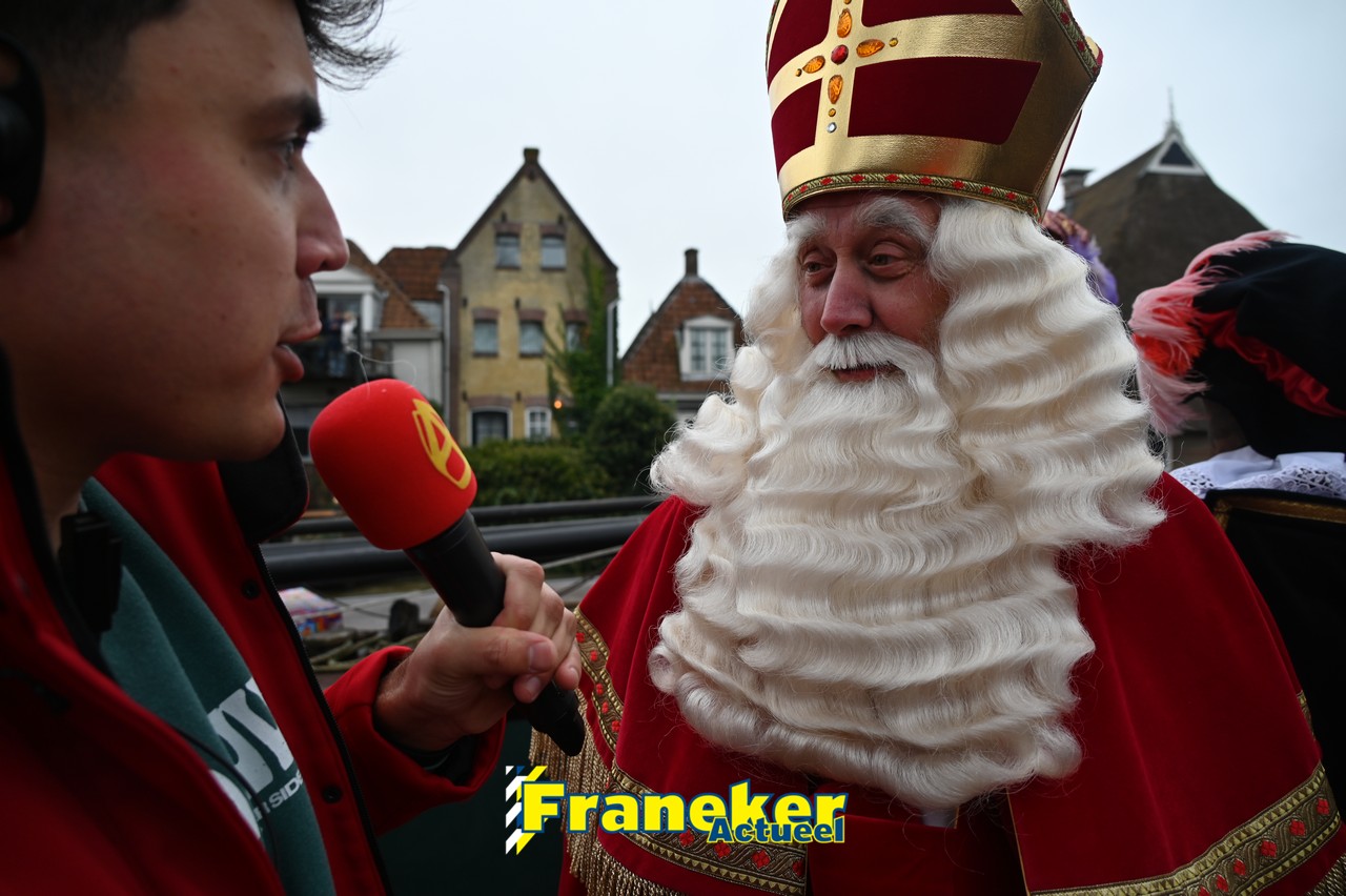 De jaarlijkse intocht van Sinterklaas in Franeker heeft vanmiddag opnieuw voor een feestelijke sfeer gezorgd in de stad. Om klokslag 14.00 uur arriveerde de Goedheiligman aan de Turfkade waar hij, zoals ieder jaar, met zijn kenmerkende stralende lach de vele toeschouwers begroette. Sinterklaas liet weten verheugd te zijn om iedereen weer te zien.