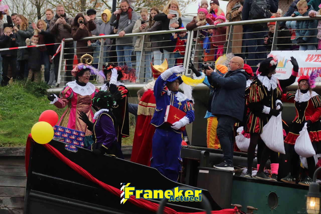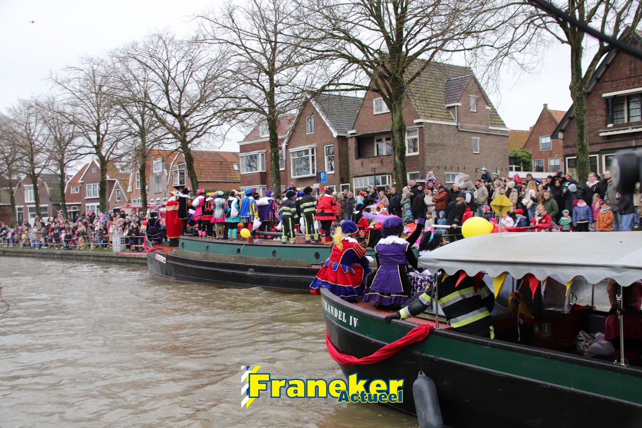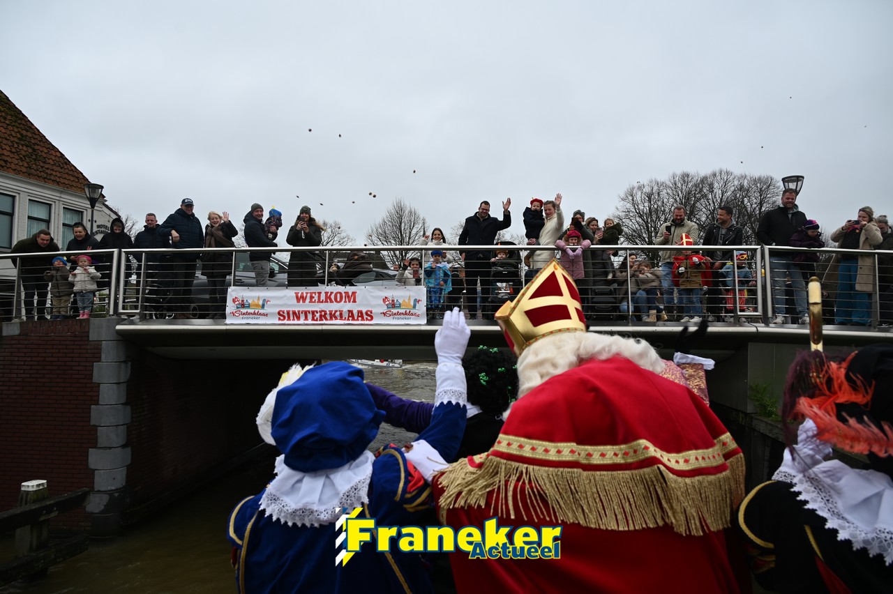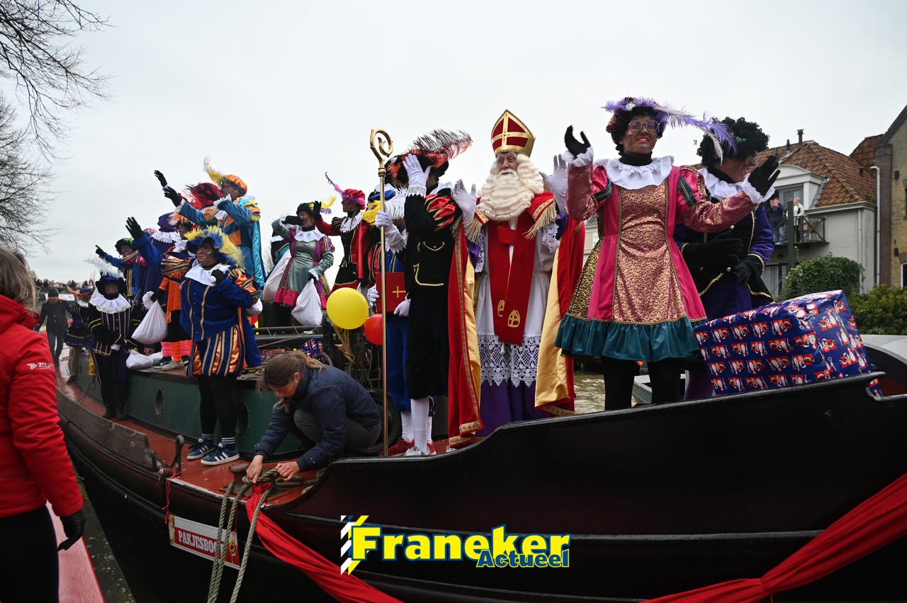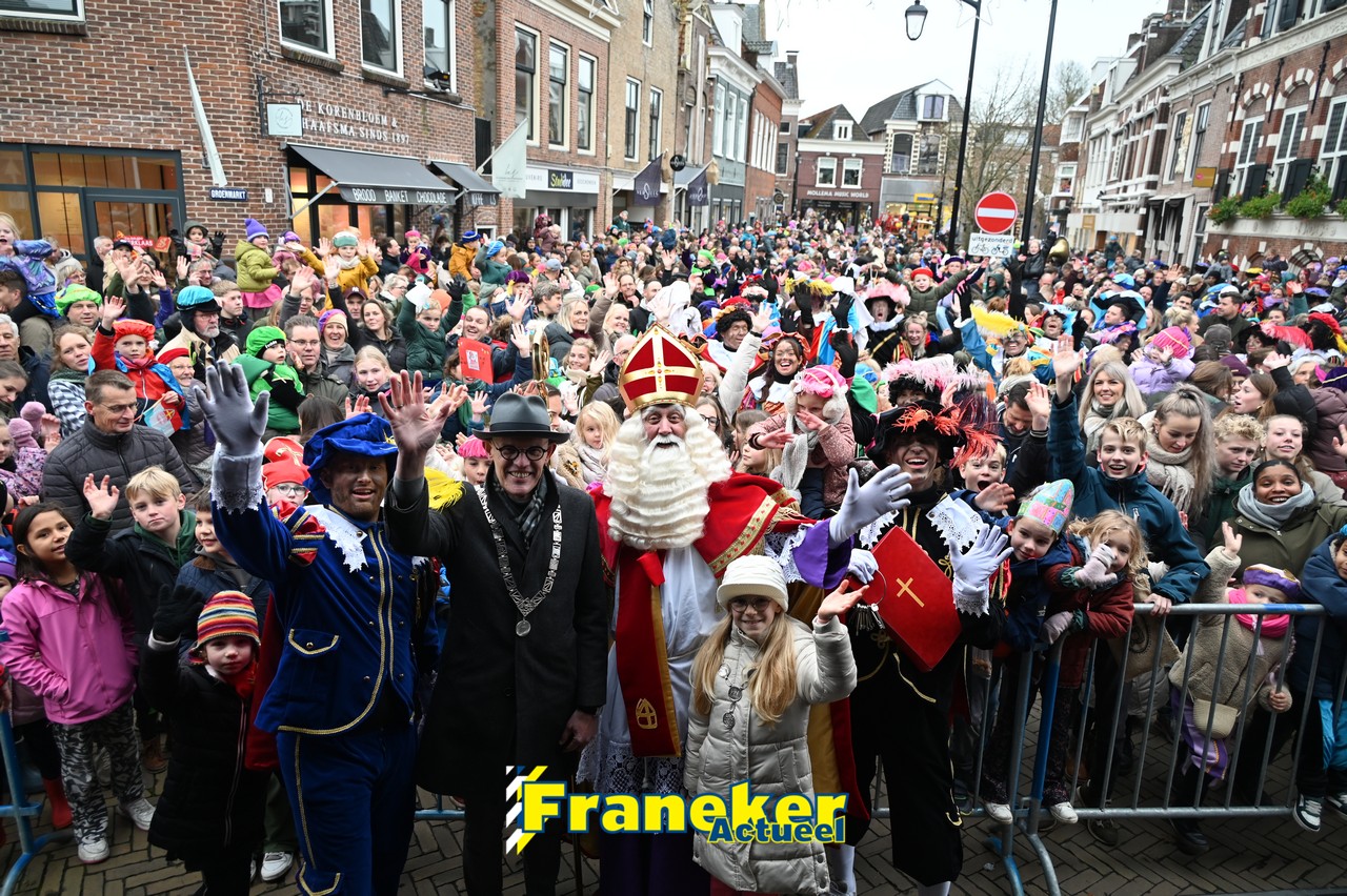 De jaarlijkse intocht van Sinterklaas in Franeker heeft vanmiddag opnieuw voor een feestelijke sfeer gezorgd in de stad. Om klokslag 14.00 uur arriveerde de Goedheiligman aan de Turfkade waar hij, zoals ieder jaar, met zijn kenmerkende stralende lach de vele toeschouwers begroette. Sinterklaas liet weten verheugd te zijn om iedereen weer te zien.