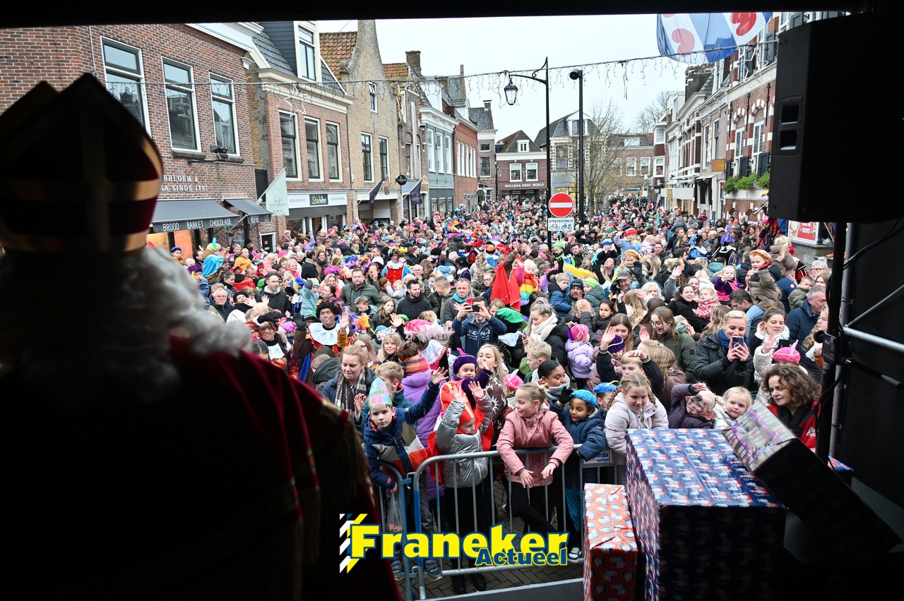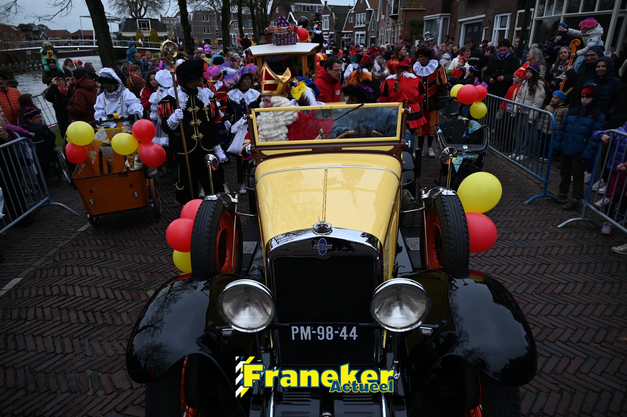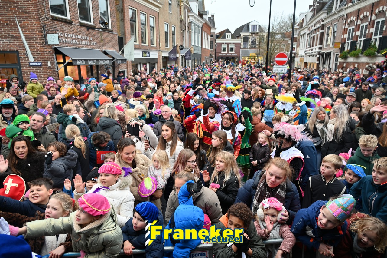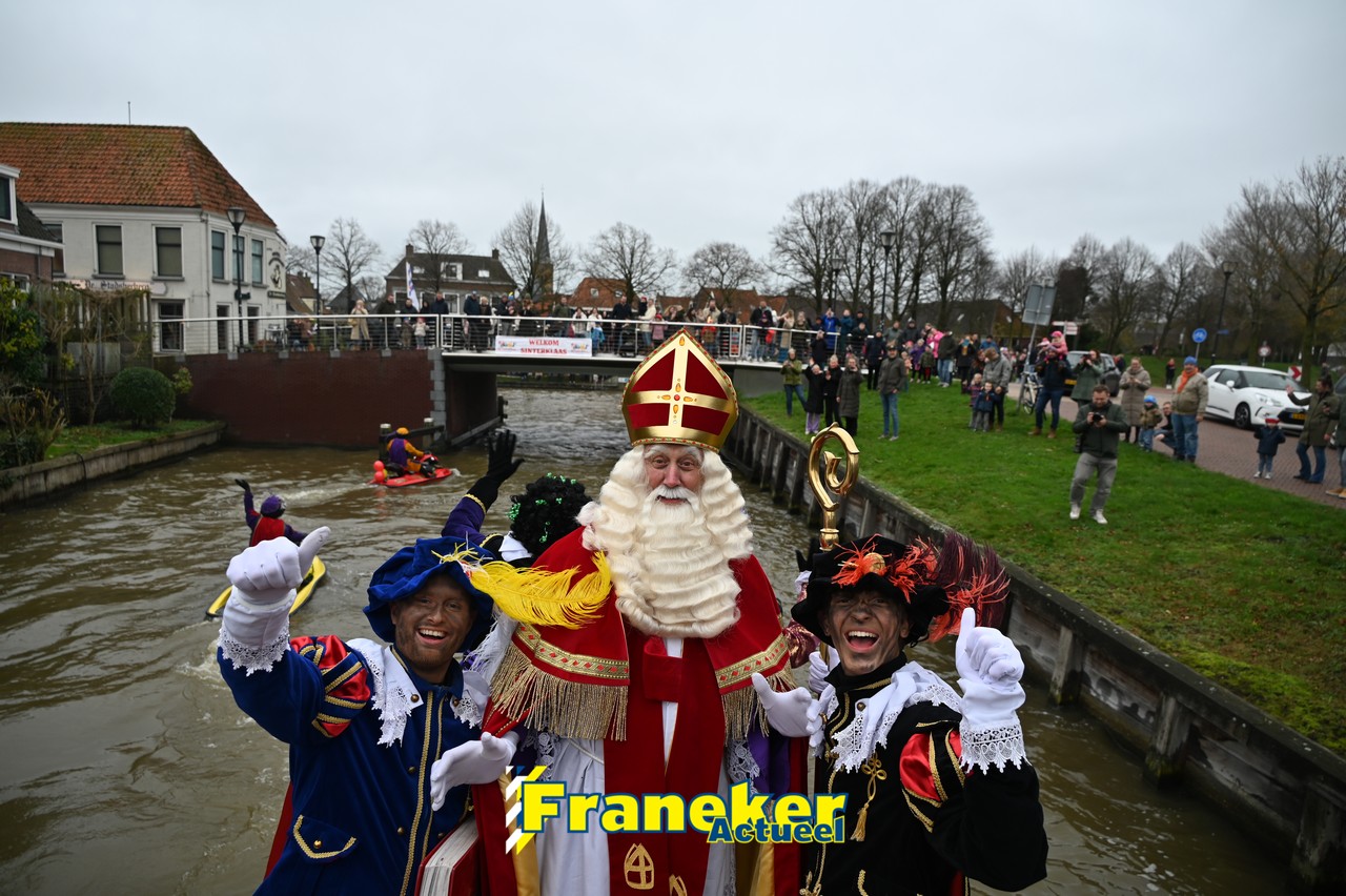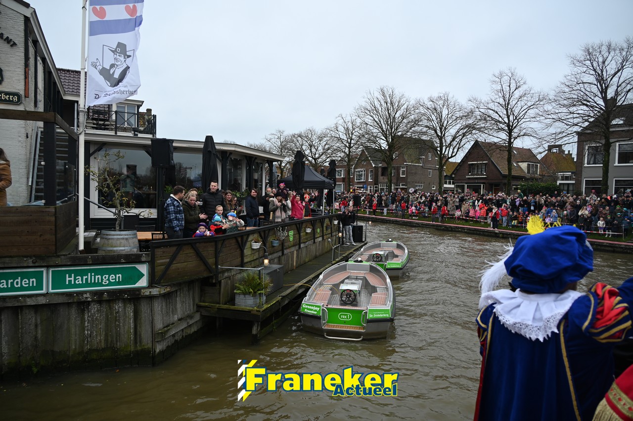 De jaarlijkse intocht van Sinterklaas in Franeker heeft vanmiddag opnieuw voor een feestelijke sfeer gezorgd in de stad. Om klokslag 14.00 uur arriveerde de Goedheiligman aan de Turfkade waar hij, zoals ieder jaar, met zijn kenmerkende stralende lach de vele toeschouwers begroette. Sinterklaas liet weten verheugd te zijn om iedereen weer te zien.