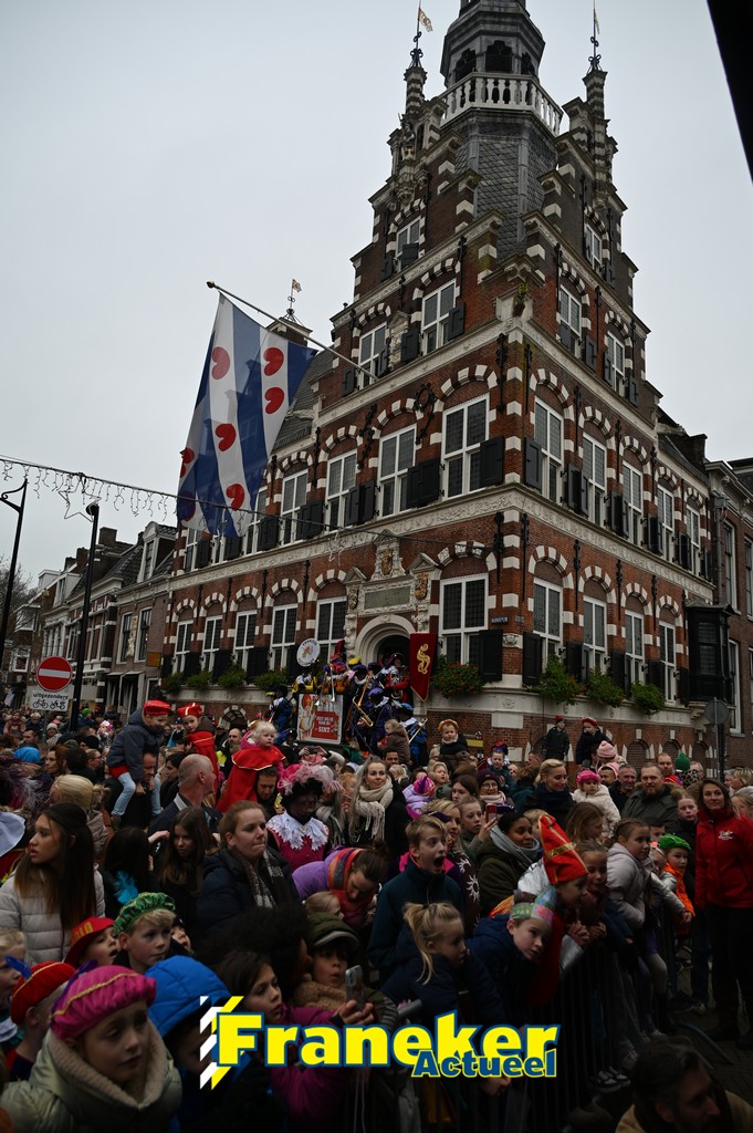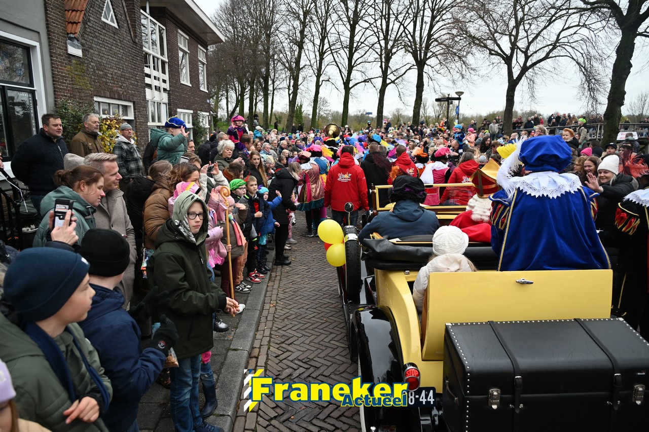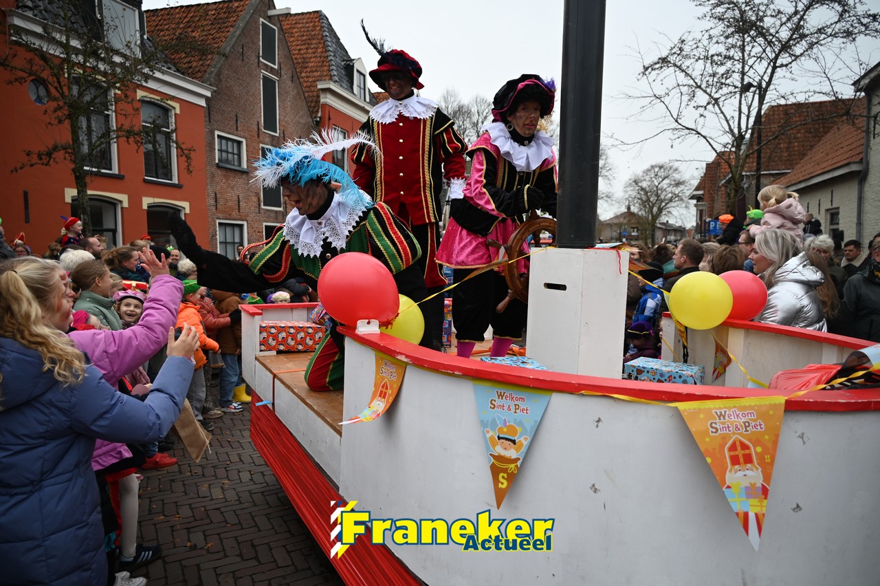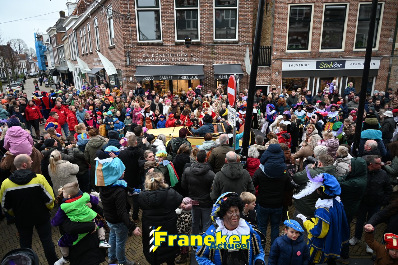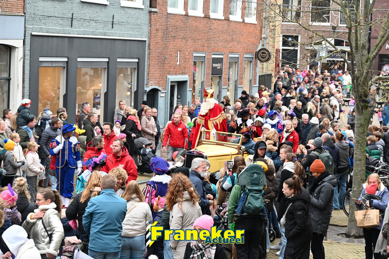 De jaarlijkse intocht van Sinterklaas in Franeker heeft vanmiddag opnieuw voor een feestelijke sfeer gezorgd in de stad. Om klokslag 14.00 uur arriveerde de Goedheiligman aan de Turfkade waar hij, zoals ieder jaar, met zijn kenmerkende stralende lach de vele toeschouwers begroette. Sinterklaas liet weten verheugd te zijn om iedereen weer te zien.