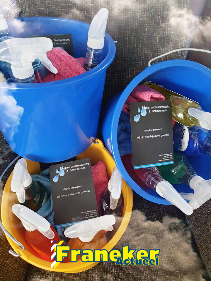 - 3 x een goed gevulde emmer met schoonmaakspullen van Grijpma Glasbewassing t.w.v. 20,- p.s.