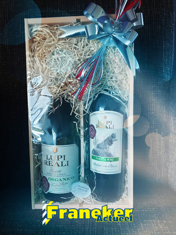 - Een kistje met twee heerlijke wijnen t.w.v. 20,-