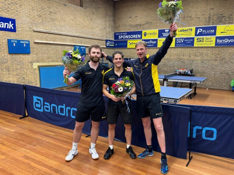 FTTC 1 is zaterdag kampioen geworden en promoveert – net als een jaar geleden – naar de landelijke 1e divisie. In eigen zaal werd DOV 1 uit Heerhugowaard met 7-3 verslagen. Voldoende voor een kampioensfeestje in tafeltenniscentrum de Driesprong.