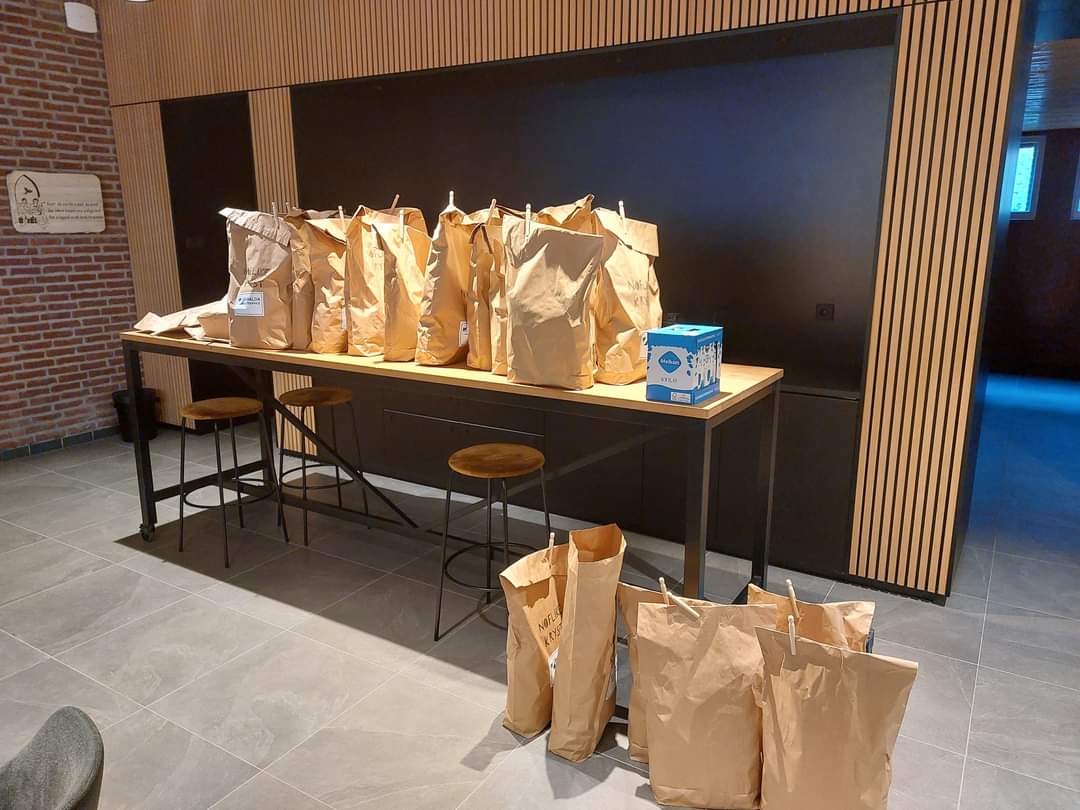 De dozen zijn ingeleverd bij de dichtstbijzijnde voedselbank, in Waadhoeke en Harlingen is dat voedselbank `de Helpende Hand`. Is daar toevallig geen tekort, dan worden ze via het distributiesysteem van de Voedselbank naar een plek gebracht waar de producten wél nodig zijn. Dus je doet het nooit voor niks.”