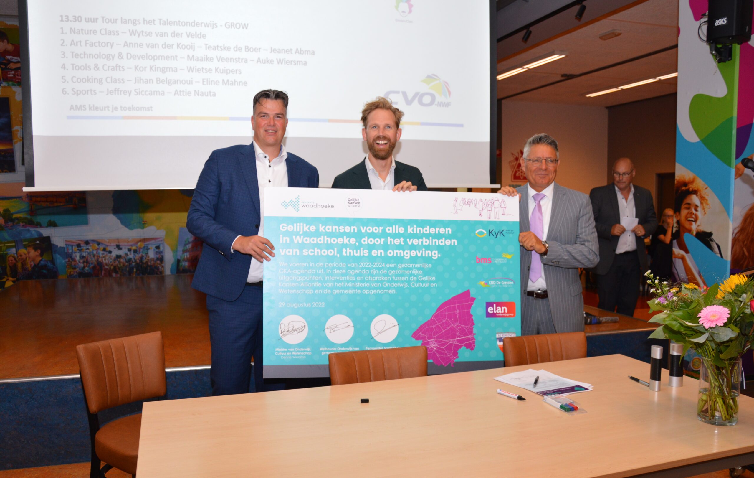 Gemeente Waadhoeke sluit zich aan bij de Gelijke Kansen Alliantie. Op 29 augustus zetten minister Wiersma, wethouder De Vries én penvoerder basisscholen Van der Galiën (bestuurder Elan Onderwijsgroep) hun handtekening onder een samenwerkingsovereenkomst van de Gelijke Kansen Alliantie (GKA). Het doel van de samenwerking is gelijke kansen bevorderen voor alle kinderen in Waadhoeke. Hoe dat gebeurt, is vastgelegd in een Gelijke Kansen Agenda.