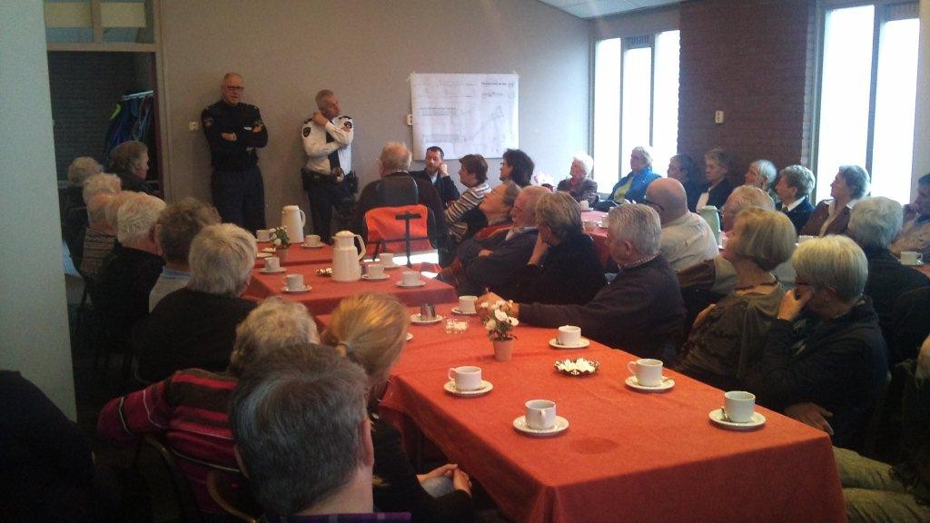 Franeker – De door de Wijkraad Professorenbuurt en De Skûle Welzijn georganiseerde bijeenkomst voor senioren & ouderen uit de Professorenbuurt kende afgelopen woensdag 16 februari opnieuw een hoge opkomst. De bijeenkomst vond plaats in ‘het hart van de wijk’, de vrije baptistenkerk aan de Holwerdastraat, en trok ruim 60 senioren en ouderen uit de wijk. Tijdens de bijeenkomst was er een presentatie door beleidsambtenaar Wilma Stienstra over de herinrichting van de Hertog van Saxenlaan. Na de koffiepauze gaven namens de politie de wijkagenten Hans Schuinders en Andre Hoedenmaker tekst en uitleg over het politiewerk in het algemeen en hun werk als wijkagent in en voor de Professorenbuurt.