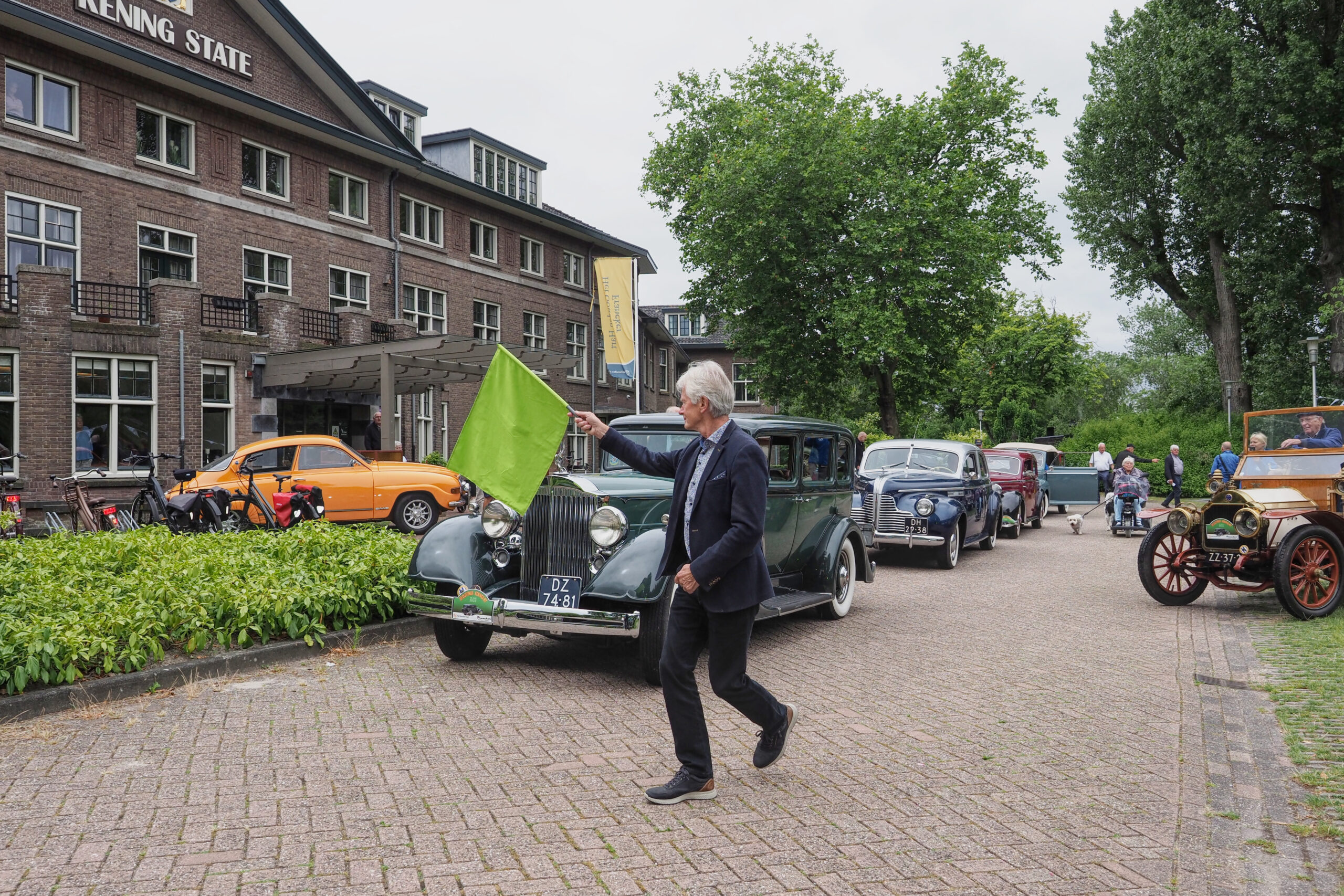 Ondank het iets wat koele weer, kwamen vanuit alle delen van het noorden van Nederland 25 antieke automobielen naar Kening State in Franeker. Zij hebben twee ritten gereden met de bewoners van Kening State. De eerste rit om 11:00 uur werd officieel gestart door wethouder Cees Arendz (foto) namens de gemeente Waadhoeke. © Foto’s Esther Monsma