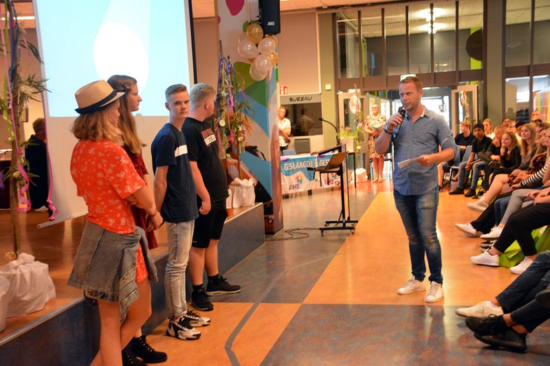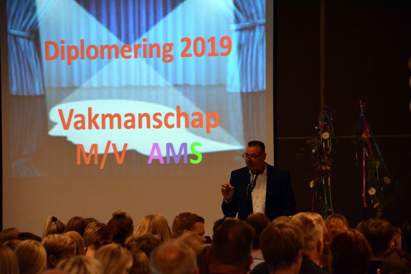 In de één na laatste week van het schooljaar staan op AMS drie hele bijzondere avonden in de agenda: de diploma uitreikingen. Dinsdagavond kregen de doeners van AMS hun diploma uitgereikt.