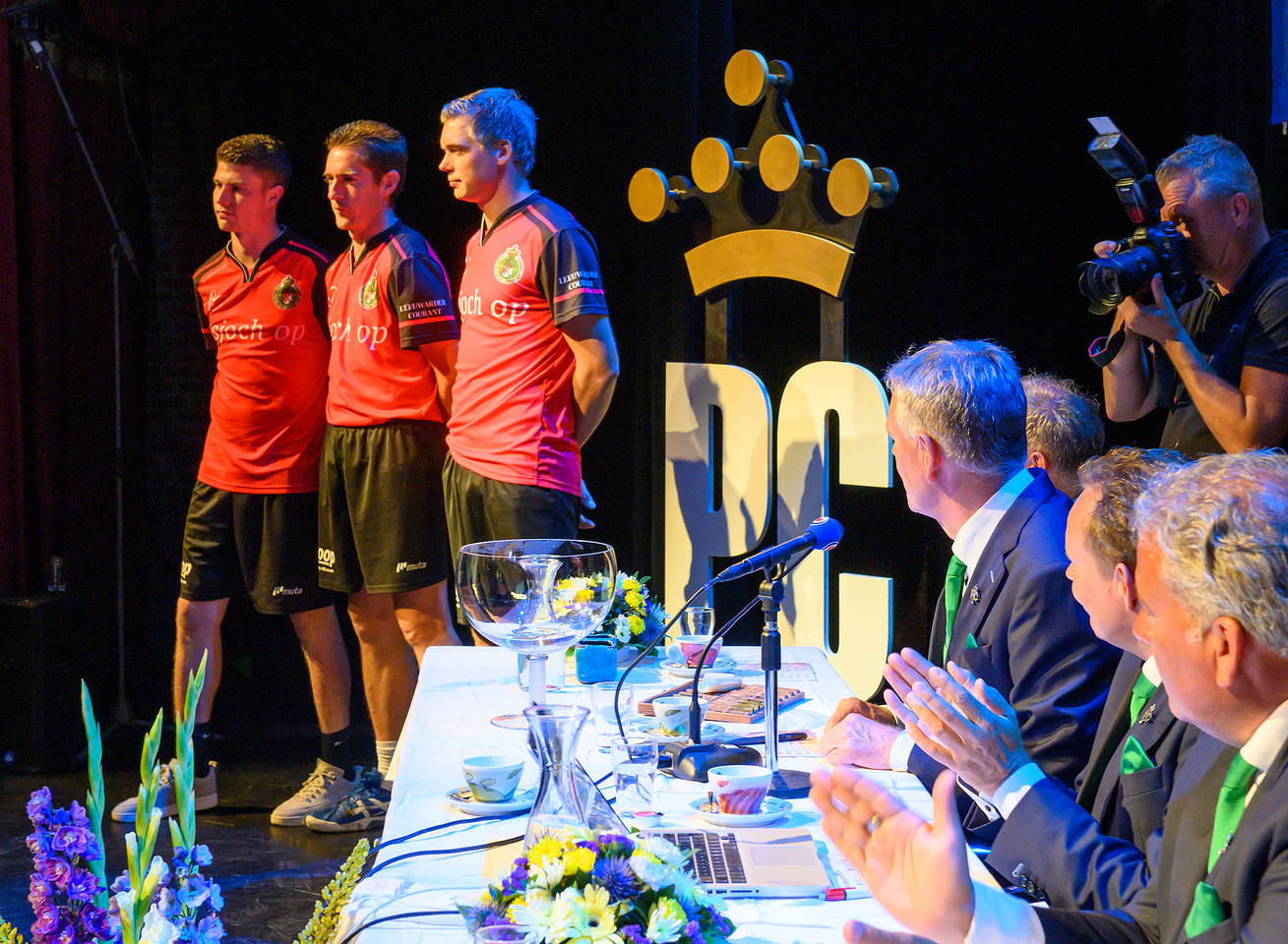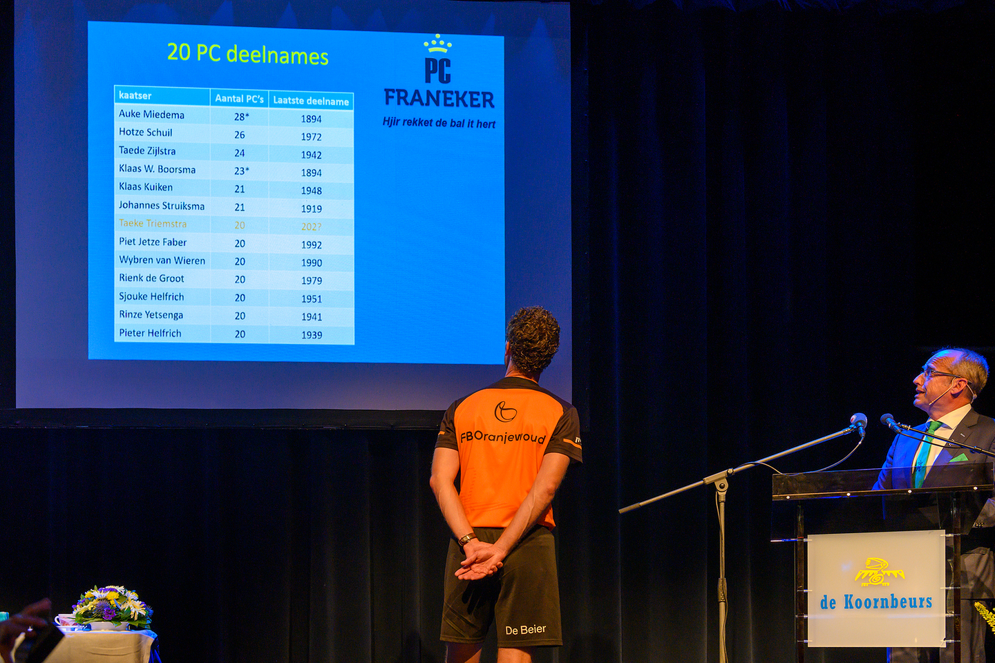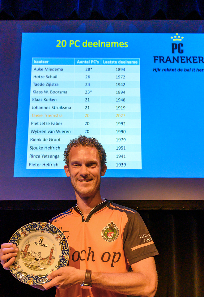 Taeke Triemstra kaatst woensdag zijn 20ste PC en werd daarvoor door voorzitter Ids Hellinga in het zonnetje gezet. Triemstra komt hierdoor in een heel illuster rijtje kaatsers.