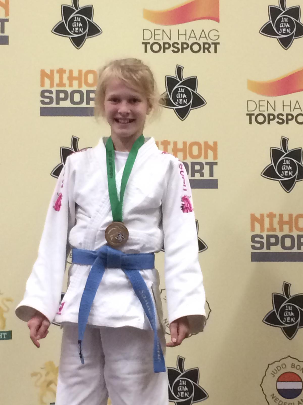 De 8-jarige Mirthe Hartman uit Sexbierum, die voor de eerste keer meedeed aan dit toernooi, kwam uit in een meidenpoule -36 kg.