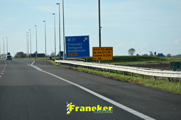 - Gevolg: Oprit Franeker (afrit 20) is tijdelijk dicht.