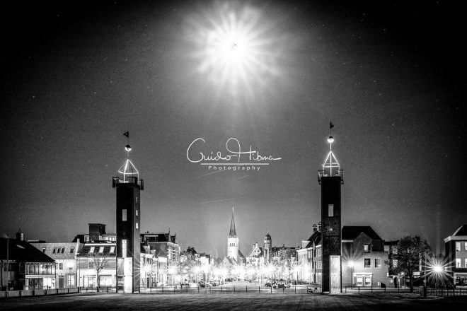 “Vaak als ik over het bolwerk loop. kijk ik naar de PC torens met de kerk in het midden en dan vraag ik mezelf af. Hoe mooi zou het zijn als daar nou eens precies boven de maan was?” Aldus Guido Hibma, fotograaf in hart en nieren.