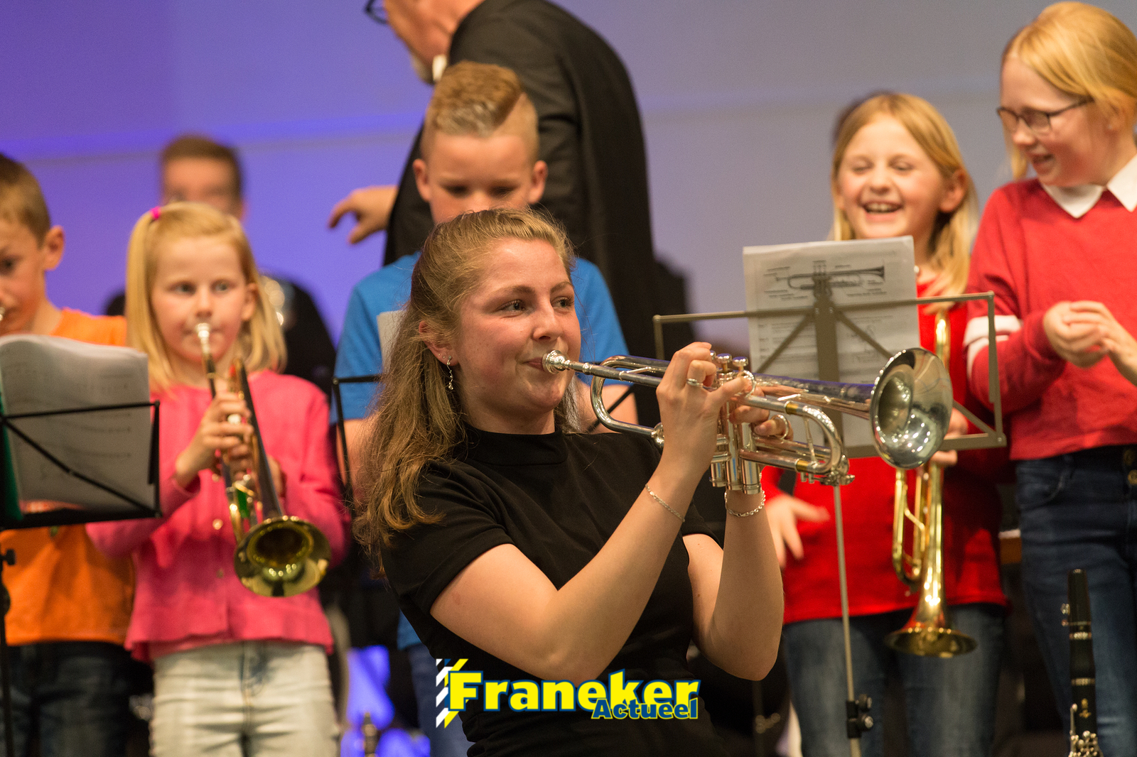 Ook heeft het korps initiatieven genomen om de jeugd te laten ervaren hoe leuk het is om een instrument te bespelen. En het resultaat was ook te bewonderen op deze jubileum avond.