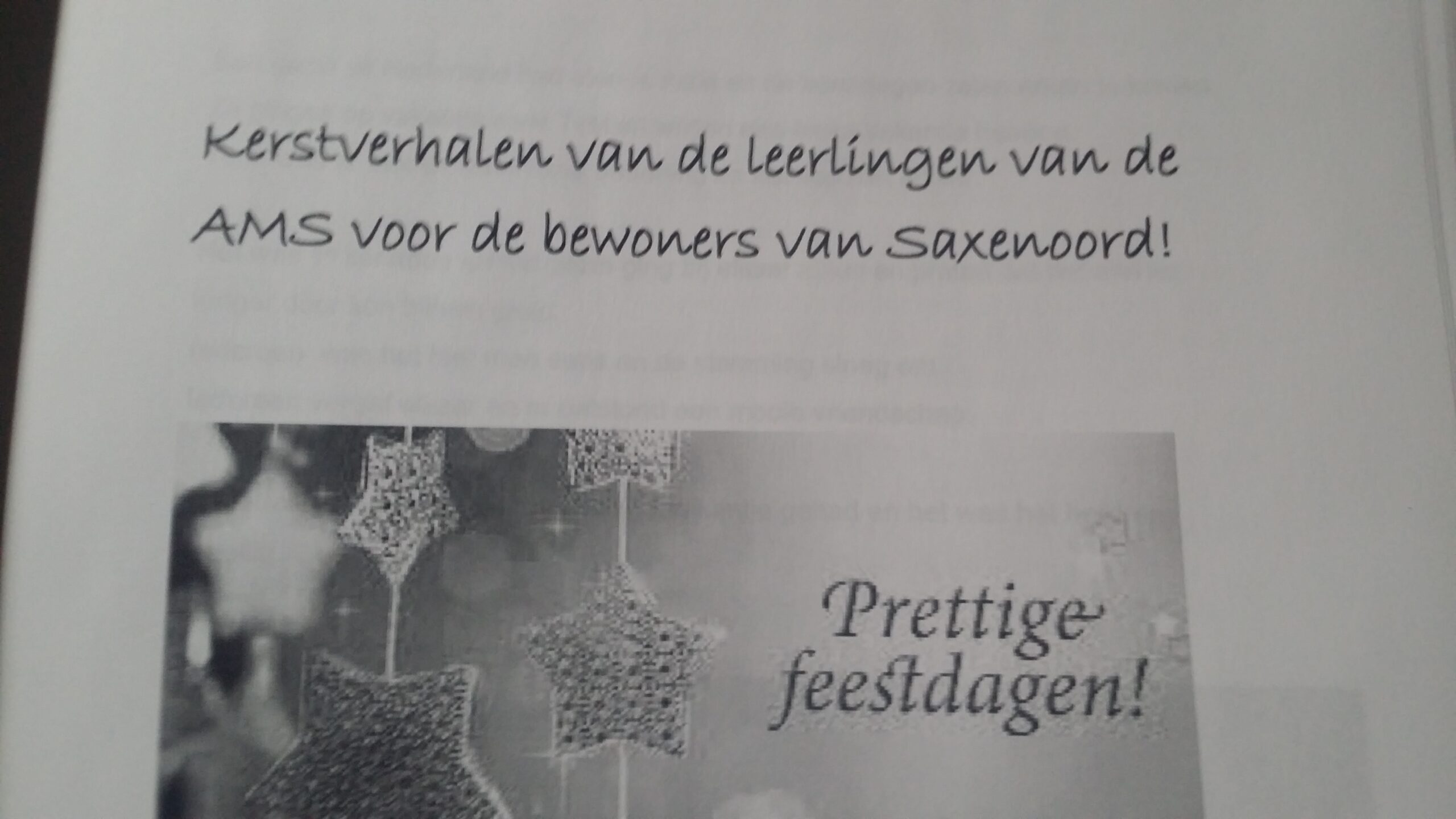 De klassen 2J, 3G en 4F, van de AMS in Franeker, hebben in de laatste week voor de Kerstvakantie in de Nederlandse lessen prachtige kerstverhalen geschreven voor de bewoners van Saxenoord. De Kerstverhalen werden ingebonden