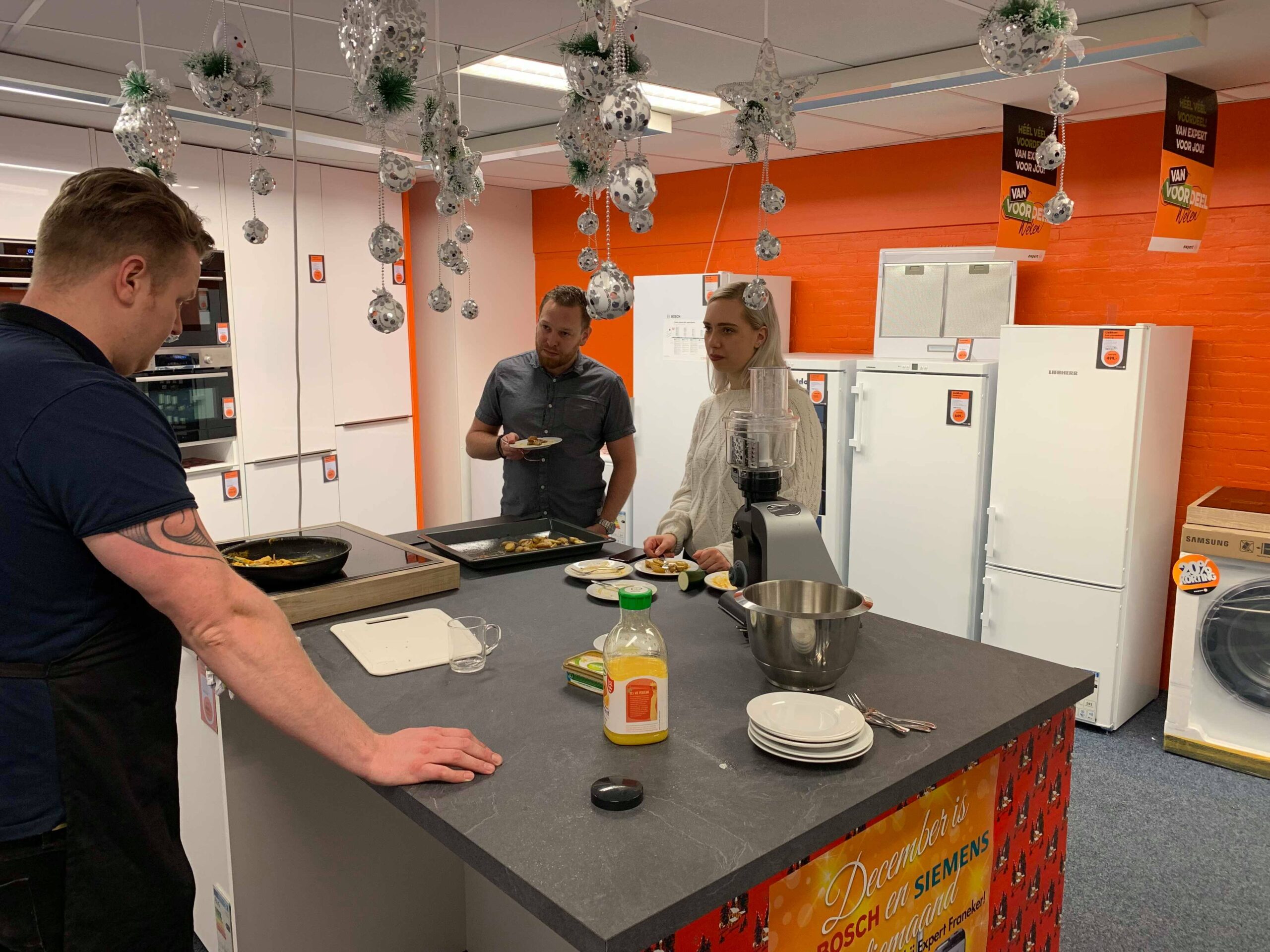 Bij Expert Franeker is de kerst al vroeg begonnen… De lekkerste gerechten stonden op het menu tijdens de Bosch-Siemens kookdemonstratie in de winkel. Een heerlijke beleving van geur en smaak was het resultaat van de succesvolle kookdemonstratie, alles bereid en uitgelegd door een professionele Chefkok! De hele decembermaand staat bij de Experts in het teken van de mooiste producten om samen van te genieten..