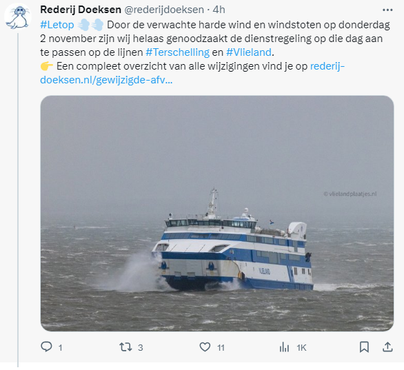 - Vlieland – Harlingen veerdienst 16.50 uur VERVALT