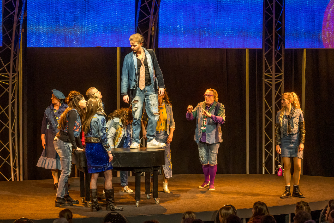 Met een mix van karikaturale typetjes en hedendaagse thema’s bracht Mearke Winsum in 12 voorstellingen de productie Sjong! voor het voetlicht.