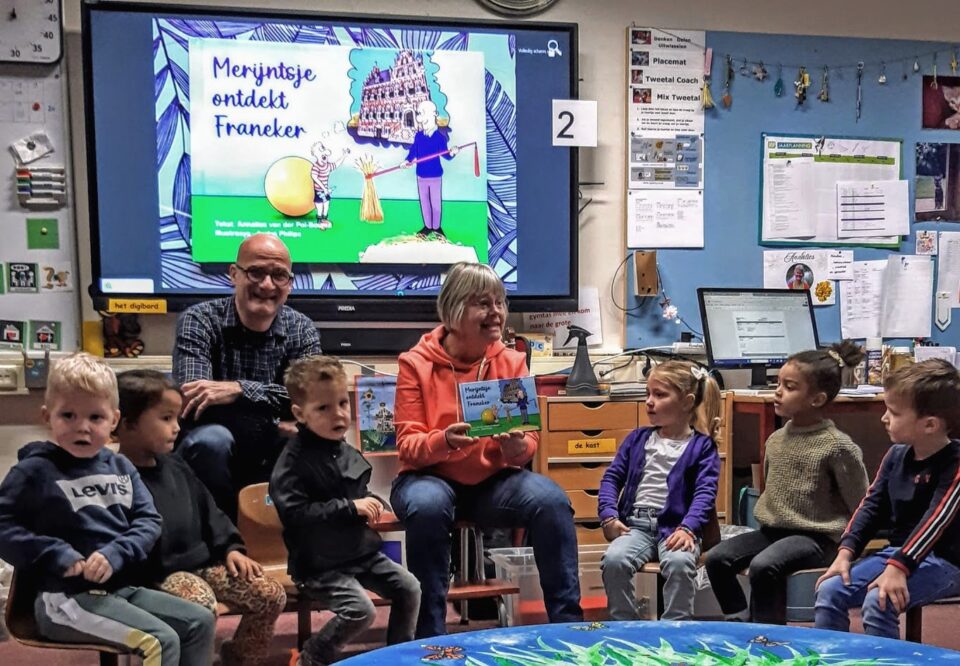 Zij heeft het aan haar leerlingen voorgelezen tijdens de nationale voorleesdagen. André Philips was hier ook bij aanwezig. De kleuters genoten. Voor velen is het Franekers hun eerste of tweede taal. Om daarin te worden voorgelezen is uniek en vertrouwd.