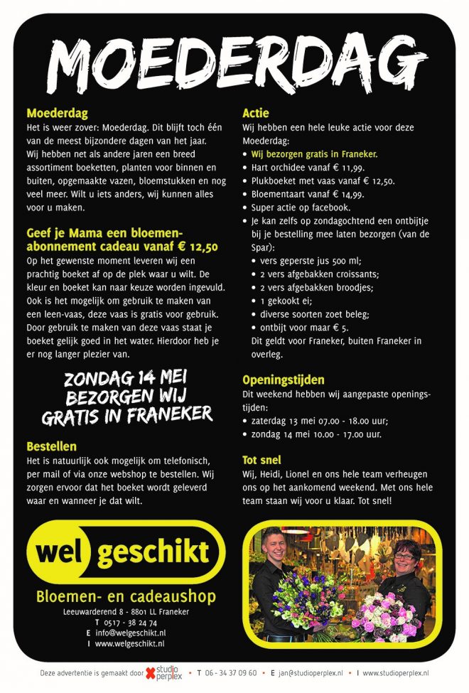 Zondag 14 mei bezorgen wij gratis in Franeker