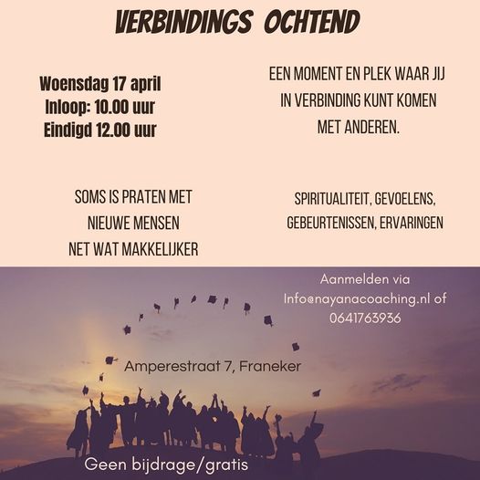Op 17 april wordt er in de winkel een verbindingsochtend georganiseerd voor maximaal 15 mensen waarbij je zonder kosten kunt komen na aanmelding.
