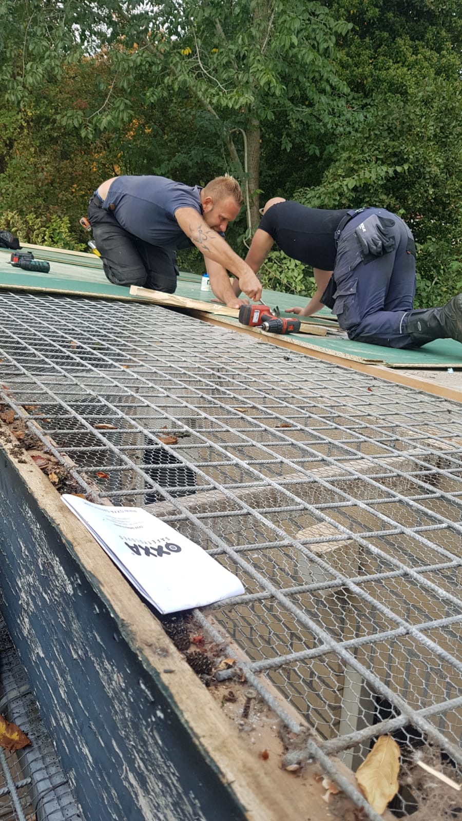 Zij overlegde hierover met haar man die dakdekker is. Deze en zijn collega boden direct aan om tegen materiaalkosten het dak te willen vervangen.