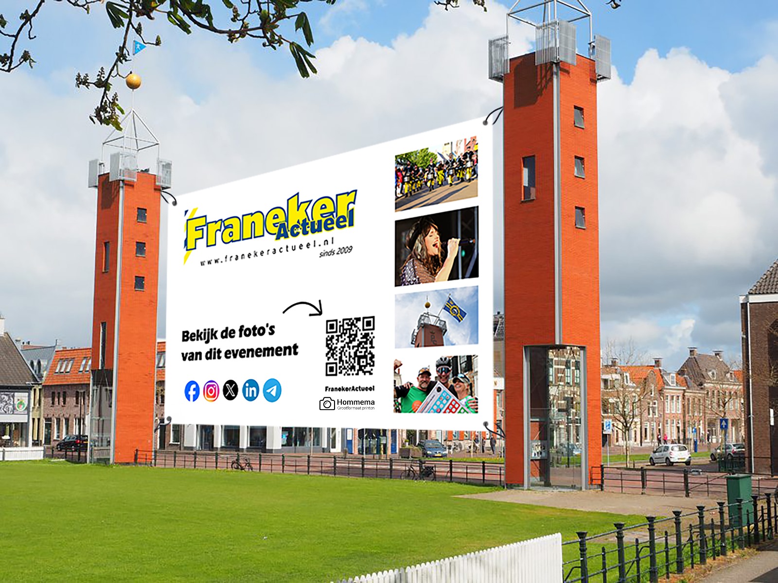 Als eerste kregen wij vandaag bericht dat ons spandoek binnen is. Dit hebben wij laten maken vanwege de aankomende evenementen. Op het spandoek vind je, naast foto’s van voorgaande evenementen en onze socialmediakanalen, ook een QR code. Door deze te scannen kom je direct op onze pagina om het laatste nieuws en foto’s te bekijken van het gaande evenement. Zo zijn wij zichtbaar en vind jij jouw foto en alle andere sneller terug. Natuurlijk willen wij goede kwaliteit zodat het doek lang mee kan en daarom heeft Foto Hommema dit spandoek voor ons ontworpen en gemaakt. En dit bericht kregen wij;
