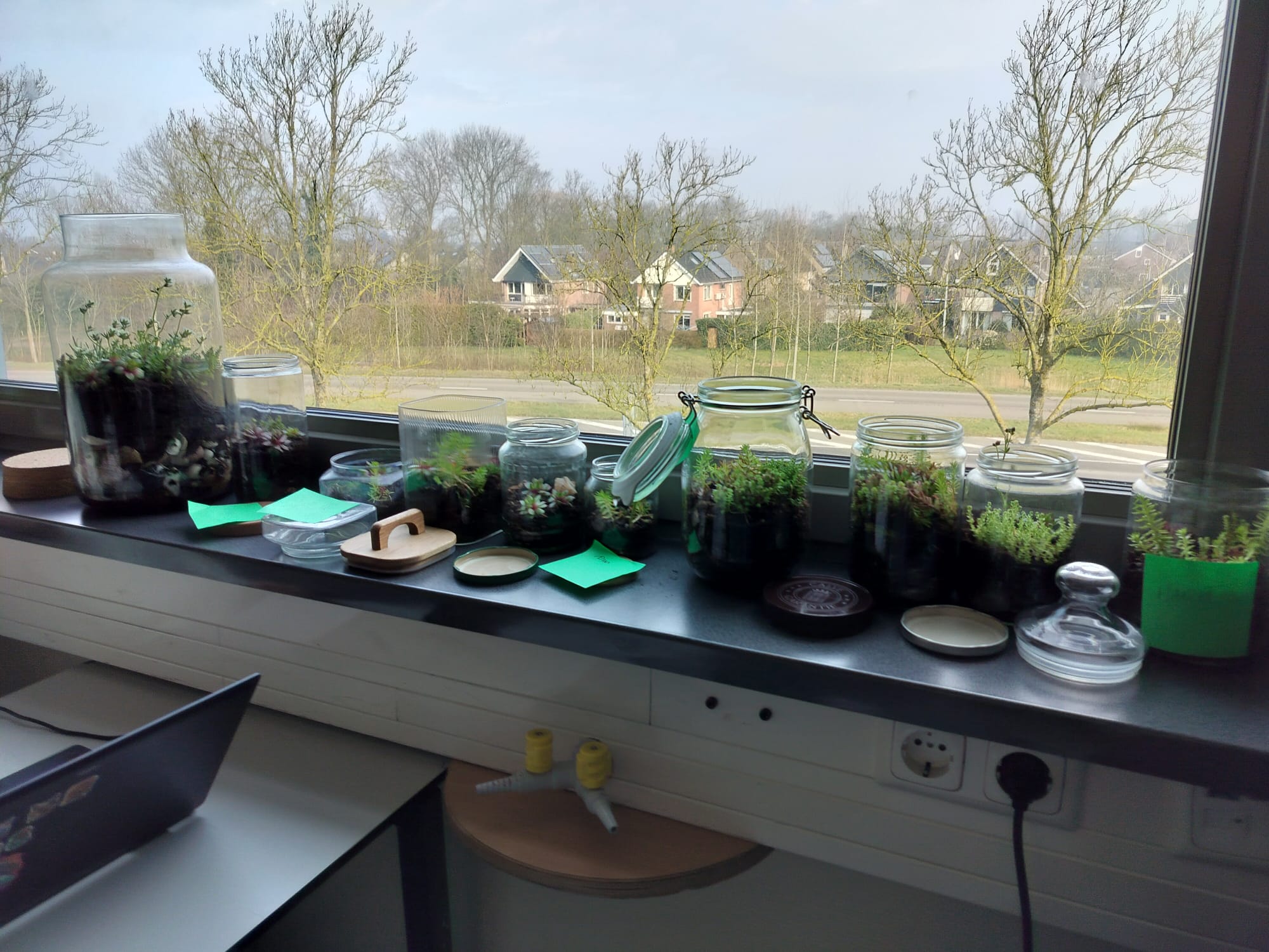 De derdejaars zijn aan de slag gegaan met het maken van hun eigen ecosphere bij biologie. Met een drainagelaag, wat actieve koolstof en tuinaarde hebben de leerlingen een bodem vol levende micro-organismen in een glazen pot geplaatst. Daarnaast zijn er verschillende vetplantjes in de potten geplant. De plantjes mogen een paar weken doorgroeien waarna de deksels op de potten gaan en er een zelfvoorzienend ecosysteem zal ontstaan. De koolstofkringloop in het echt namaken en begrijpen; op Vestdijk leer je vooral door te doen.