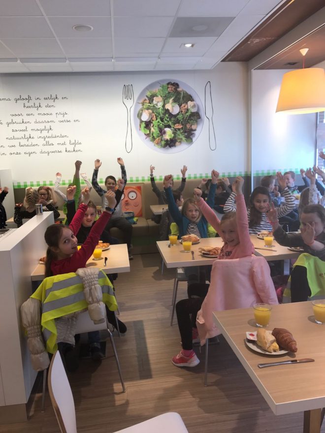 Obs de Opslach  heeft vanmorgen de prijs in ontvangst mogen nemen van de kerstfigurenwedstrijd. Voor de kerst kreeg groep 6 te horen dat ze de  2e prijs gewonnen hadden met hun creatie. De prijs was een ontbijt bij de Hema voor de hele klas.  Super leuk om zo met z’n allen daar te ontbijten. Ze bedanken dan ook de Hema Franeker die deze prijs beschikbaar heeft gesteld. het was heerlijk!